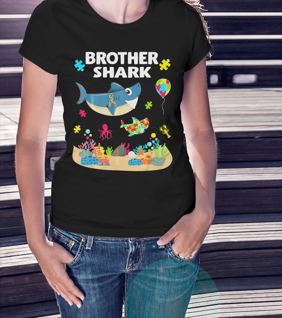 Brother Shark Autism Awareness Puzzle Underwater Scene T-Shirt