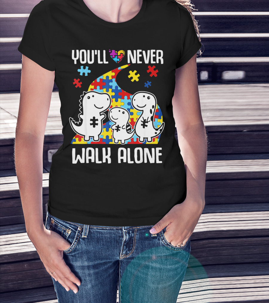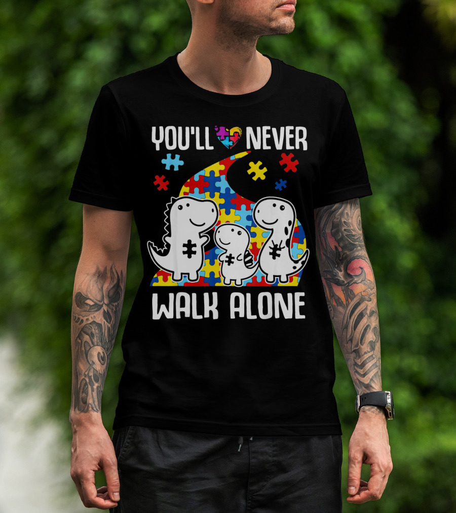 You'll Never Walk Alone Autism Awareness Puzzle Piece Dinosaurs T-Shirt