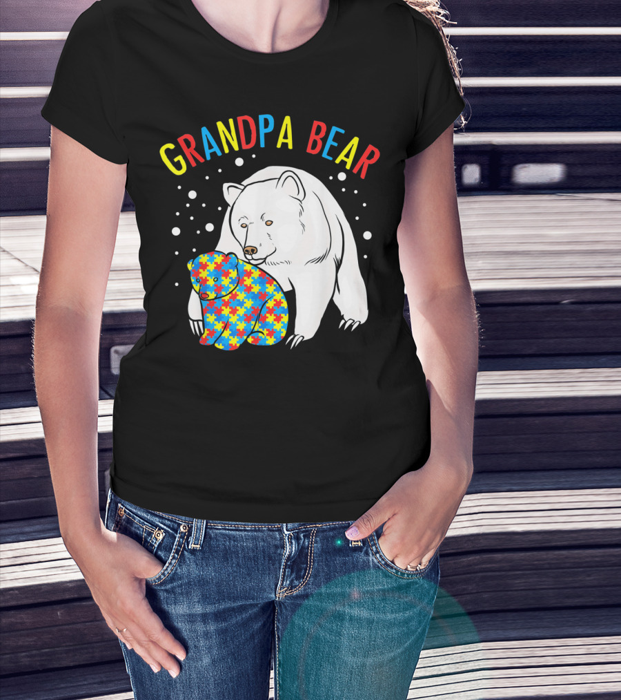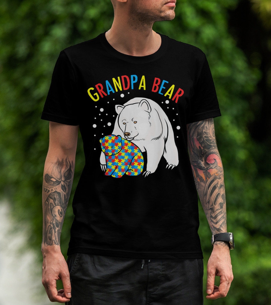 Grandpa Bear Mens Autism Awareness Puzzle Bear T-Shirt