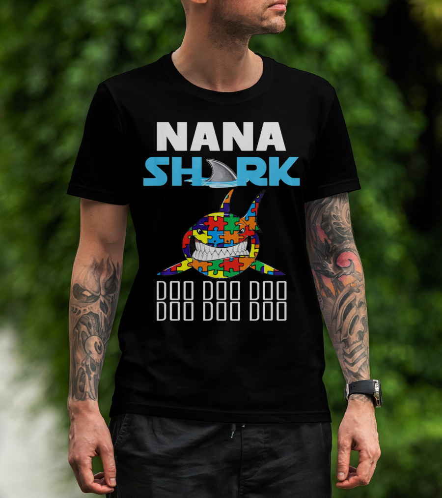 Nana Shark Autism Awareness Puzzle Doo Doo Doo T-Shirt
