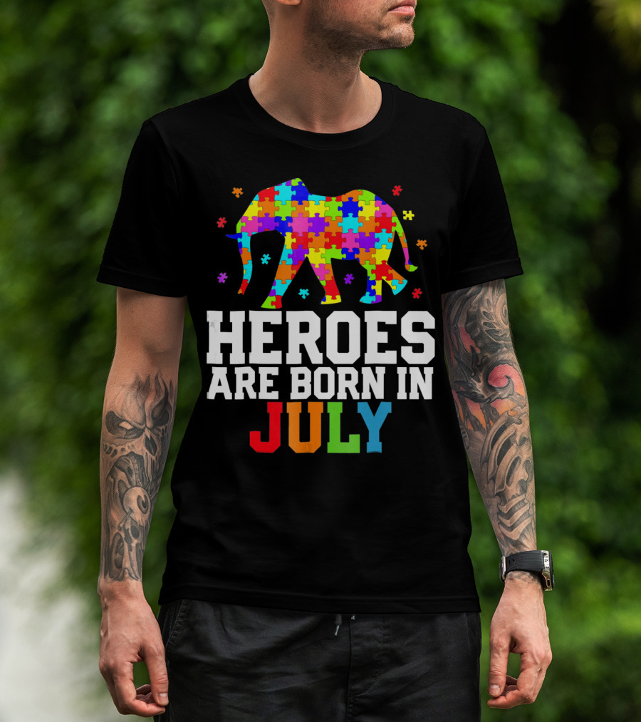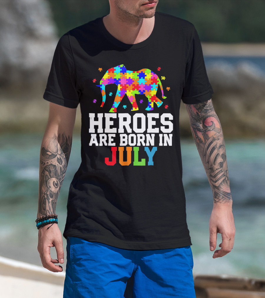 Heroes Are Born In July Elephant Autism Awareness T-Shirt