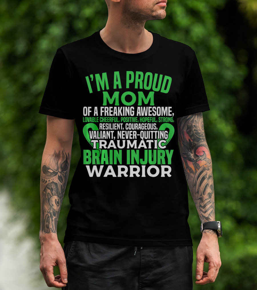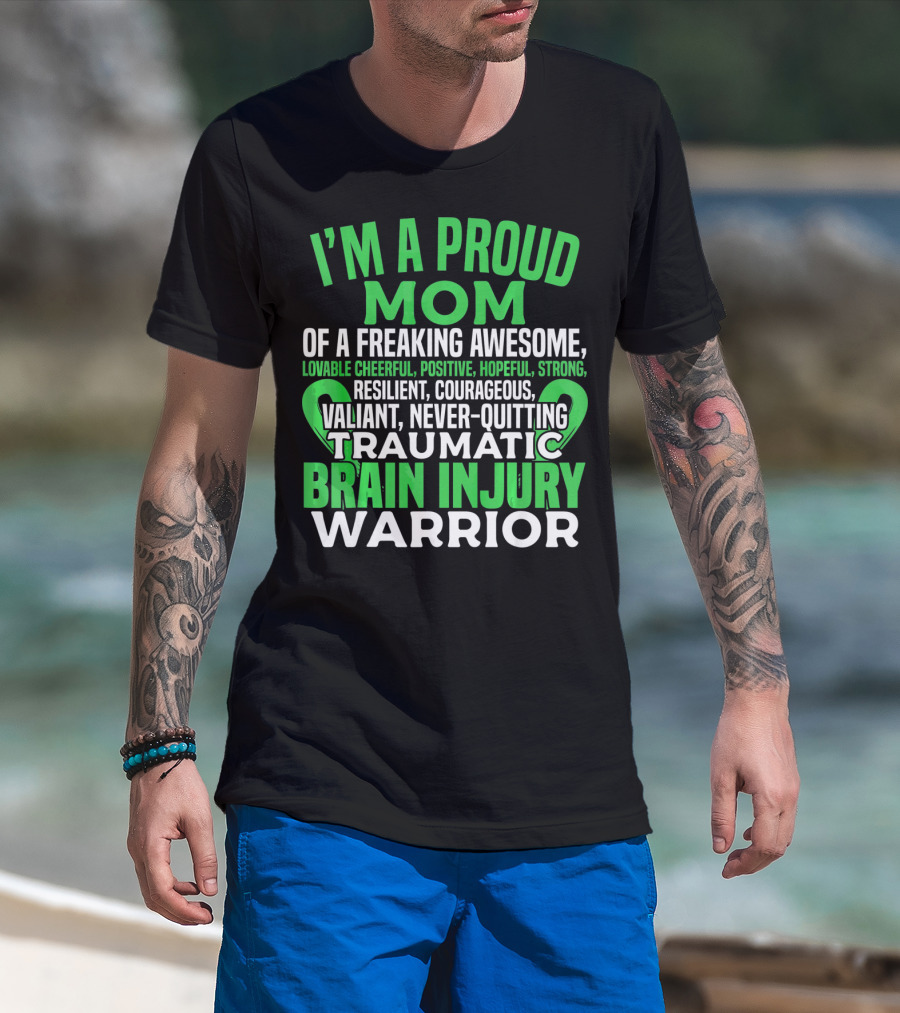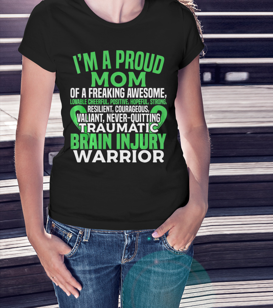 I'M A PROUD MOM OF A FREAKING AWESOME TRAUMATIC BRAIN INJURY WARRIOR LOVABLE CHEERFUL POSITIVE HOPEFUL STRONG RESILIENT COURAGEOUS VALIANT NEVER-QUITTING T-Shirt