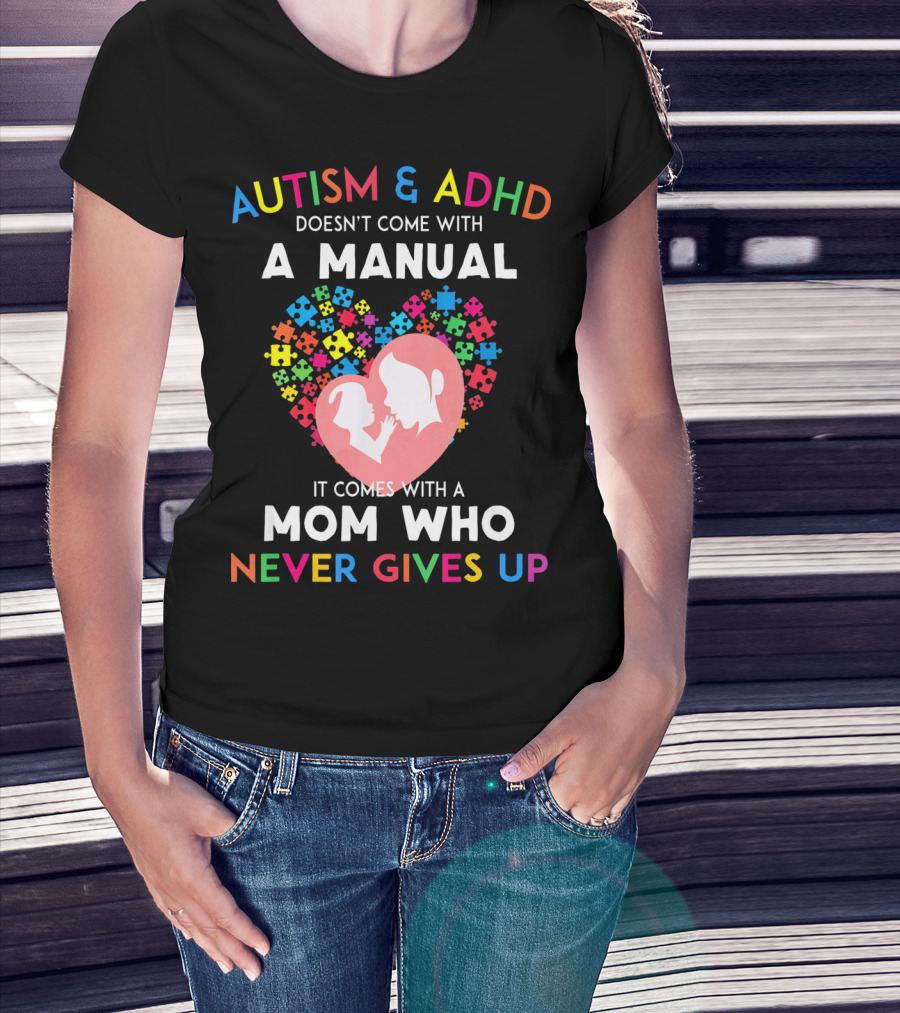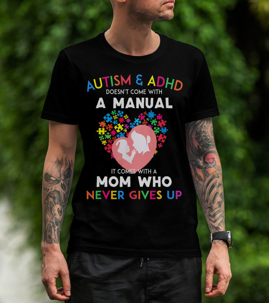 Autism And ADHD Doesn't Come With A Manual It Comes With A Mom Who Never Gives Up T-Shirt