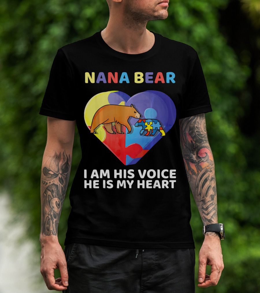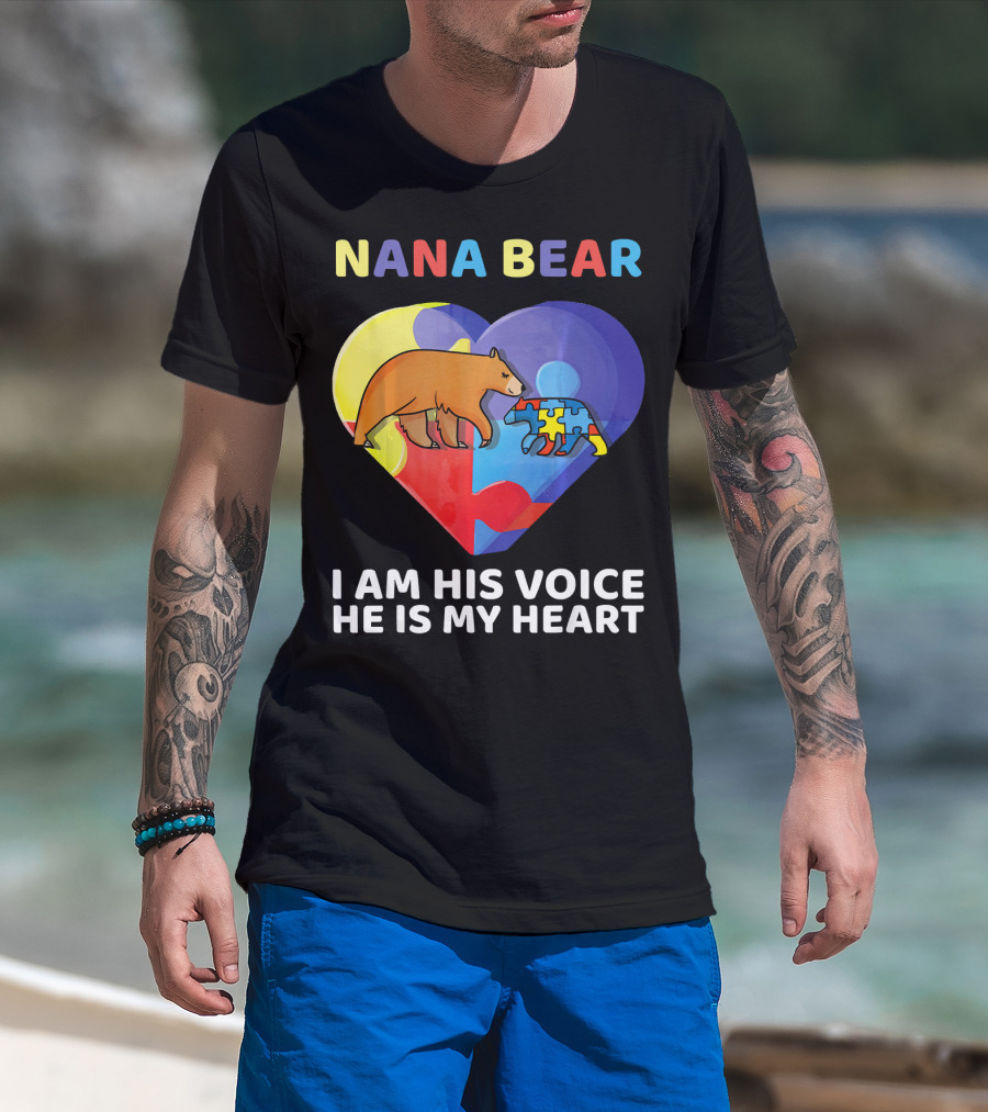 Nana Bear Autism Awareness I Am His Voice He Is My Heart T-Shirt