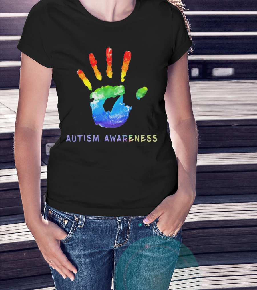 Autism Awareness Colorful Rainbow Handprint T-Shirt