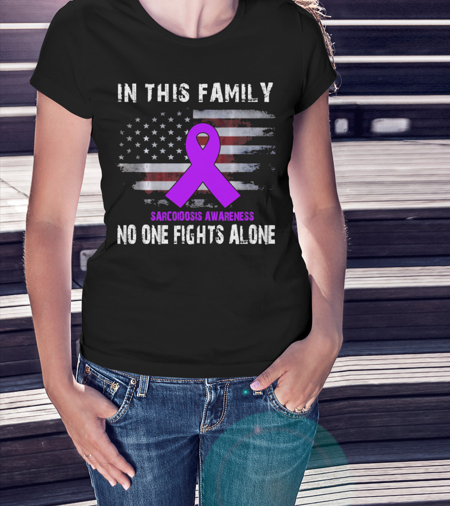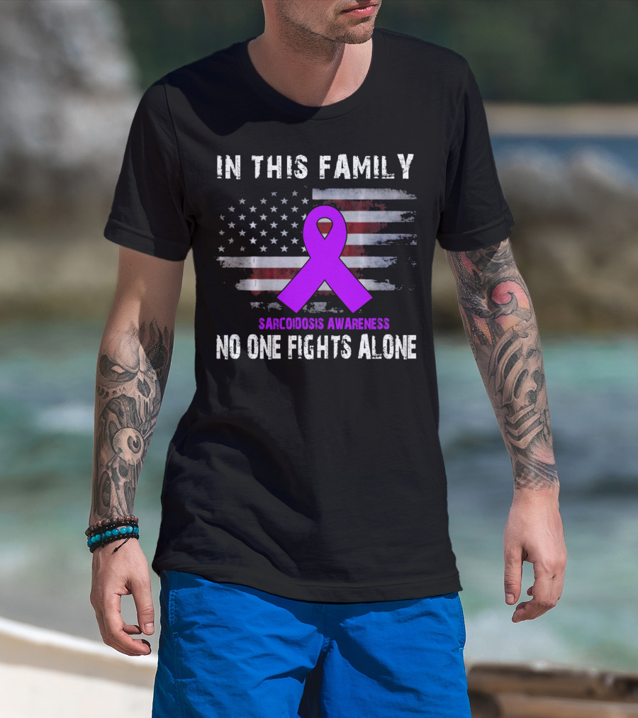 In This Family Sarcoidosis Awareness No One Fights Alone American Flag Purple T-Shirt