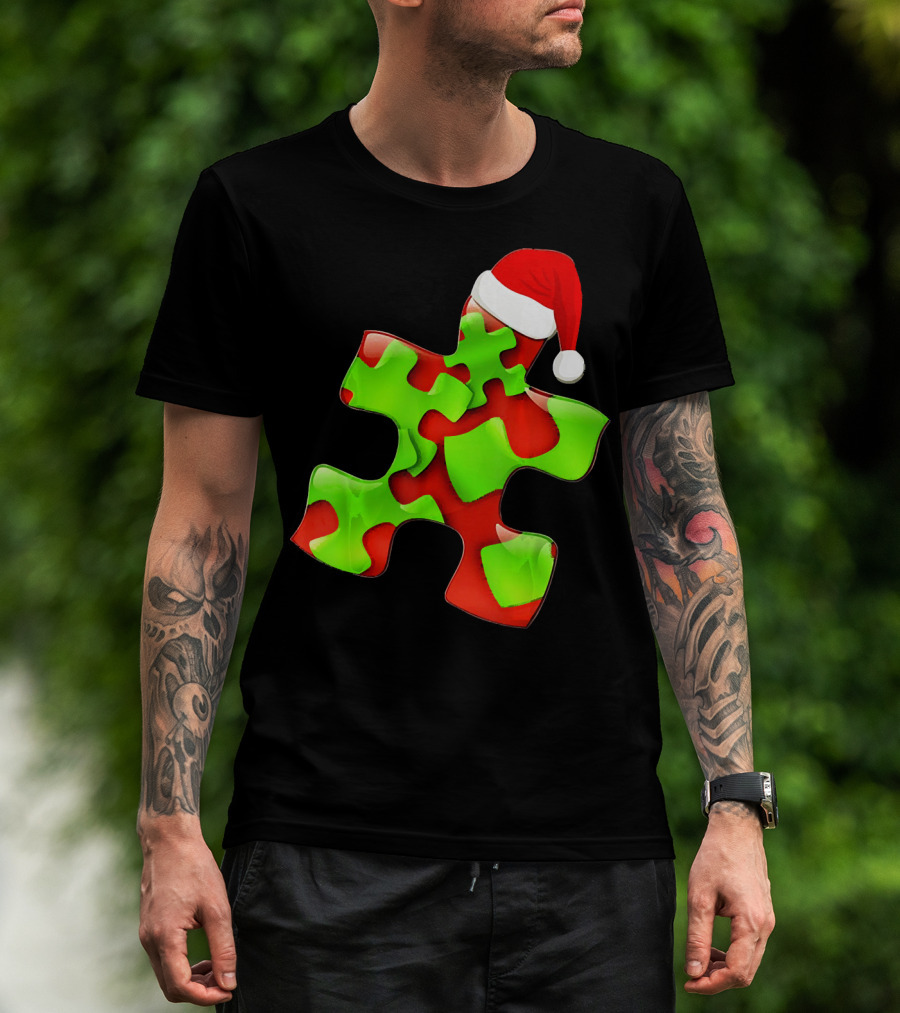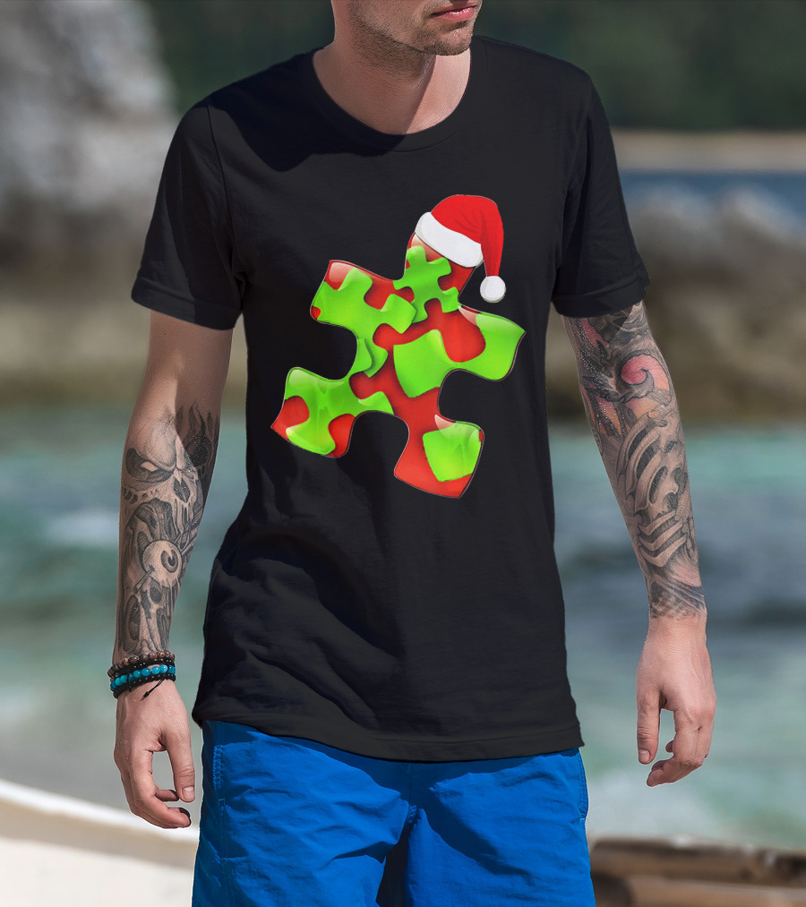 Funny Santa Claus Puzzle Piece Autism Awareness T-Shirt