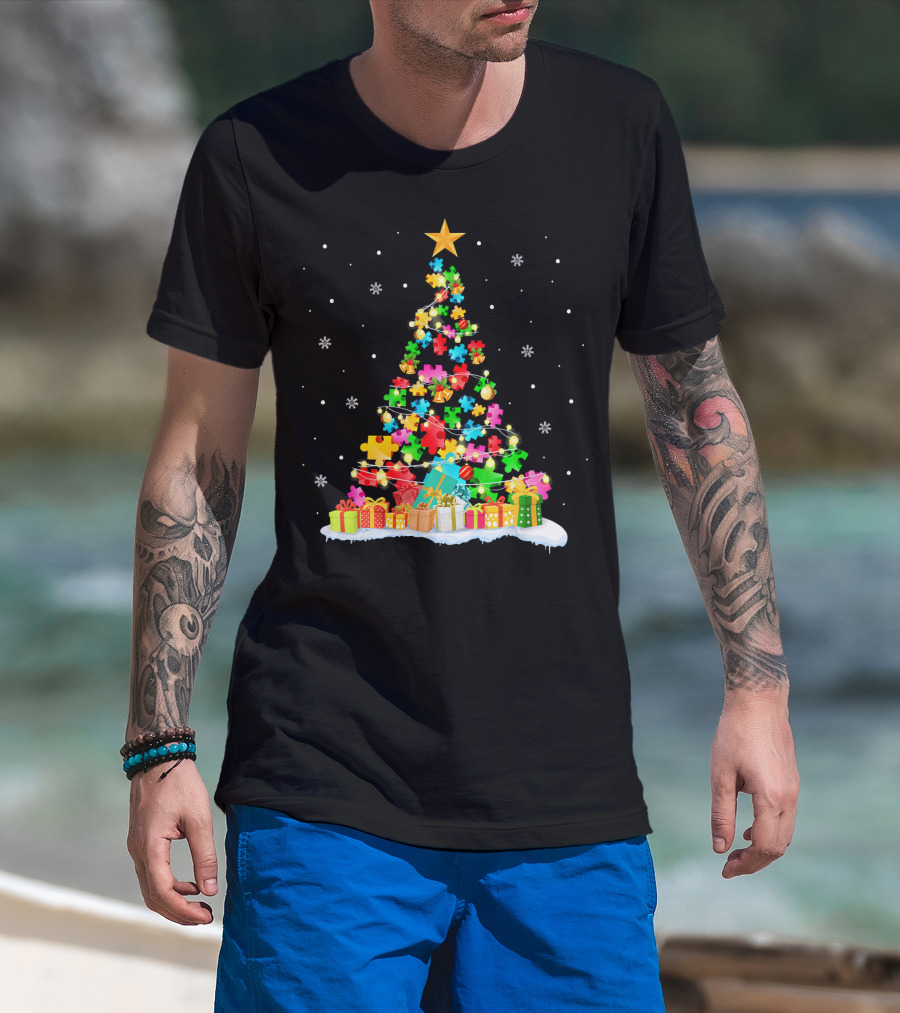 Autism Awareness Puzzle Piece Christmas Tree Holiday T-Shirt