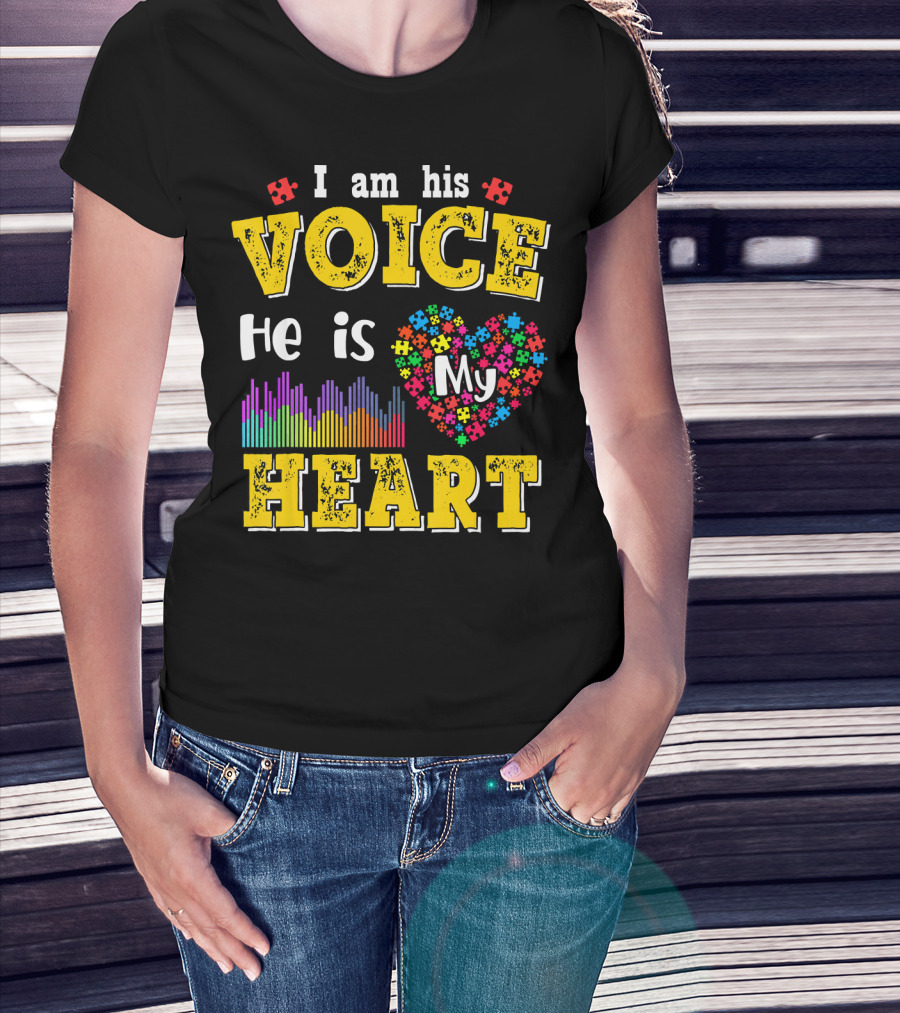 Autism Awareness I Am His Voice He Is My Heart Autism Mom Son T-Shirt