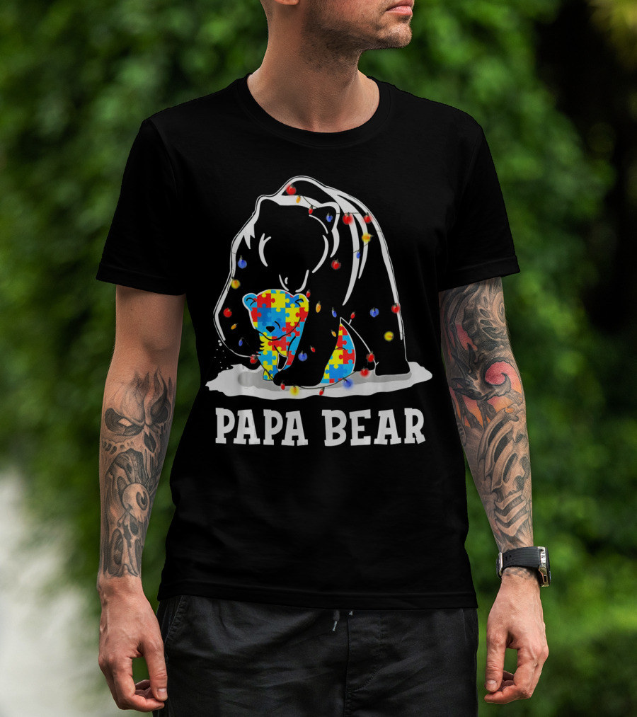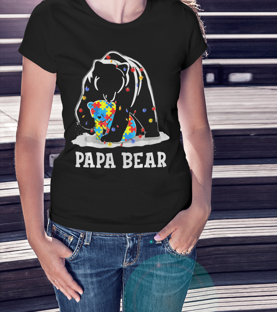 Papa Bear Puzzle Piece Autism Awareness Lights T-Shirt