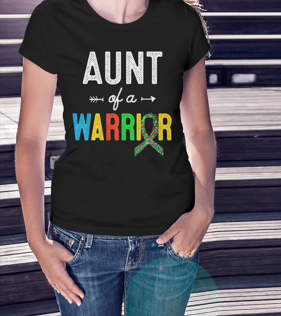 Aunt Of A Warrior Autism Awareness Colorful Puzzle T-Shirt