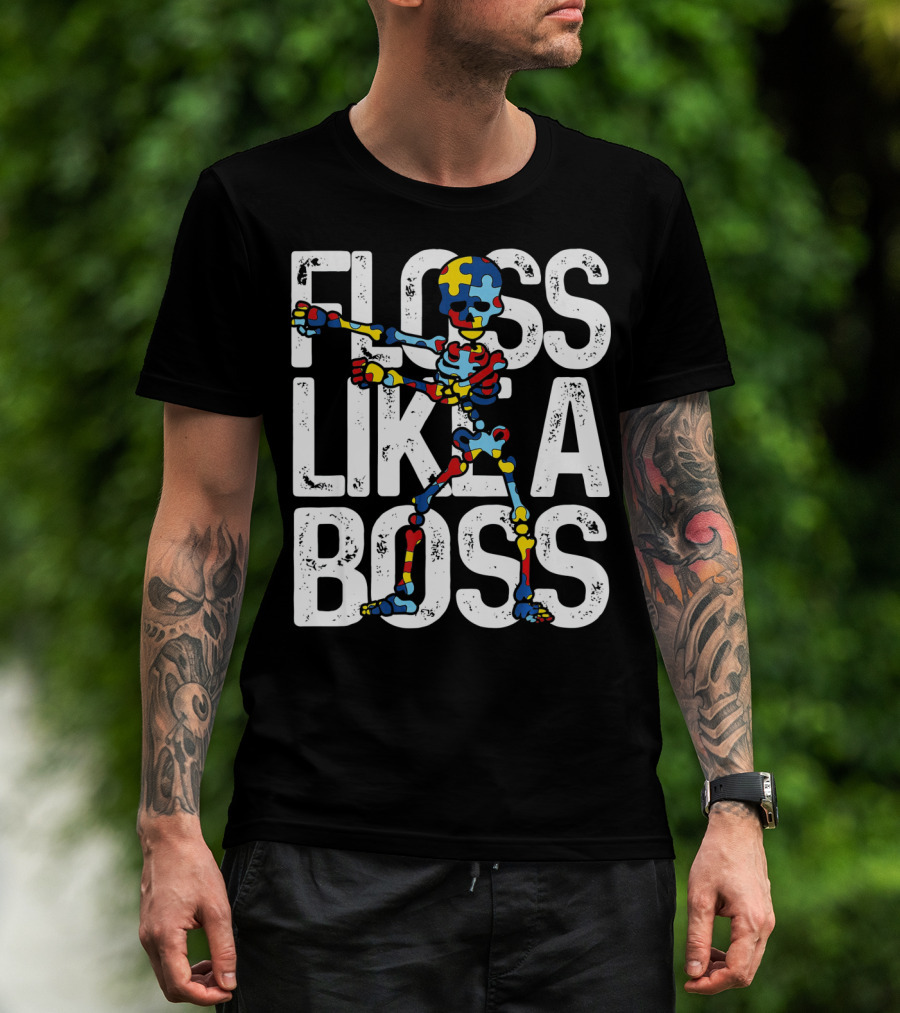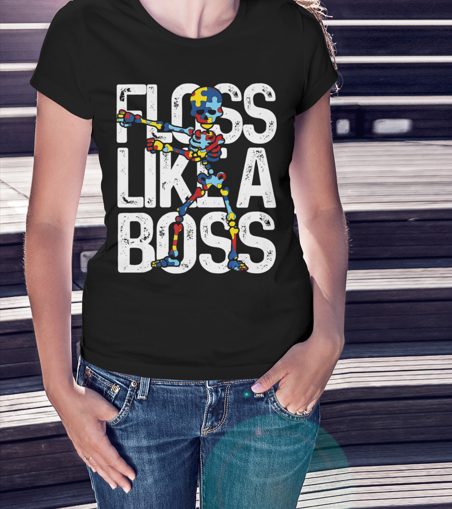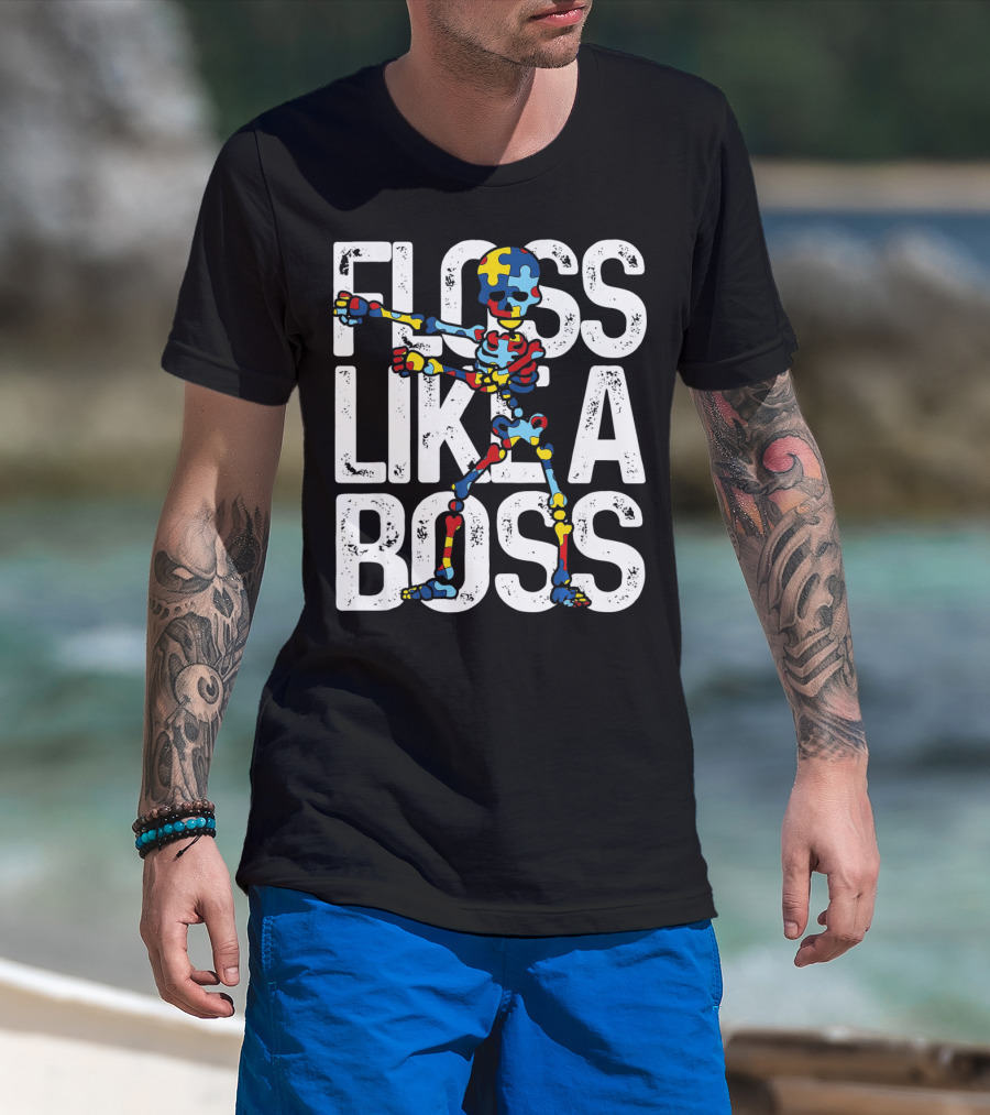 Floss Like A Boss Puzzle Skeleton Autism Awareness T-Shirt