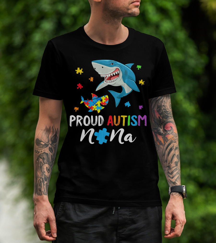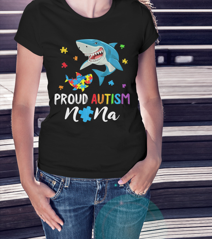 Proud Autism Nana Shark With Colorful Puzzle Pieces T-Shirt