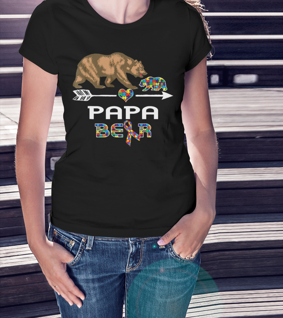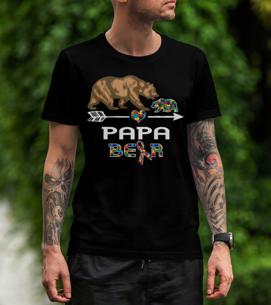 Papa Bear Puzzle Heart Arrow Autism Awareness T-Shirt