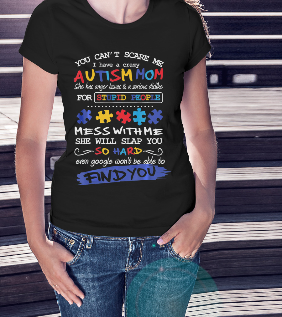 You Can't Scare Me I Have A Crazy Autism Mom Anger Issues Dislike For Stupid People Mess With Me She Will Slap You So Hard Even Google Won't Be Able To Find You T-Shirt