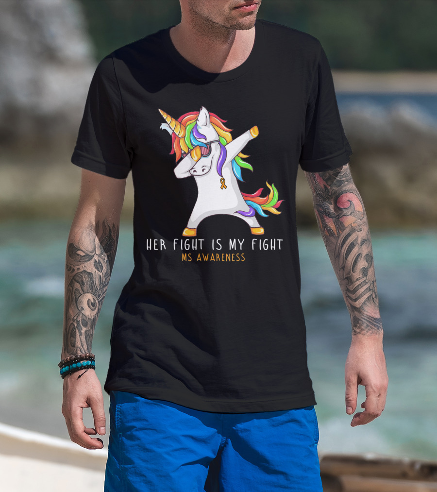Her Fight Is My Fight Dabbing Unicorn MS Awareness T-Shirt
