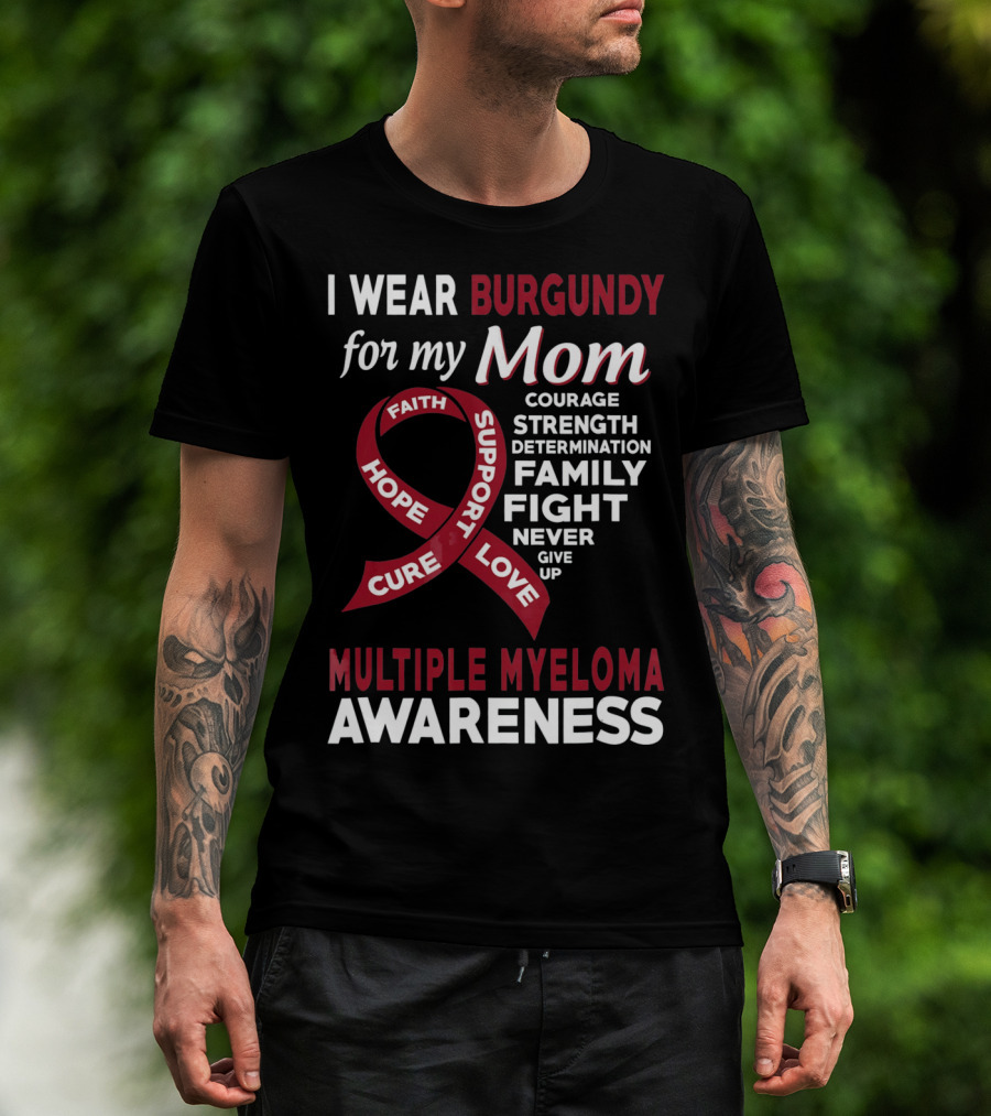 I Wear Burgundy For My Mom Multiple Myeloma Awareness Courage Strength Determination Family Fight Never Give Up T-Shirt