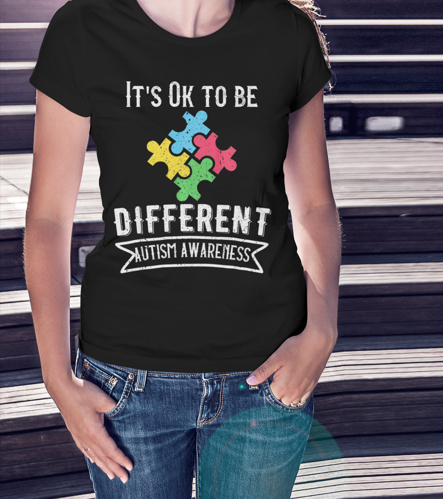It's Ok To Be Different Autism Awareness Puzzle Pieces T-Shirt