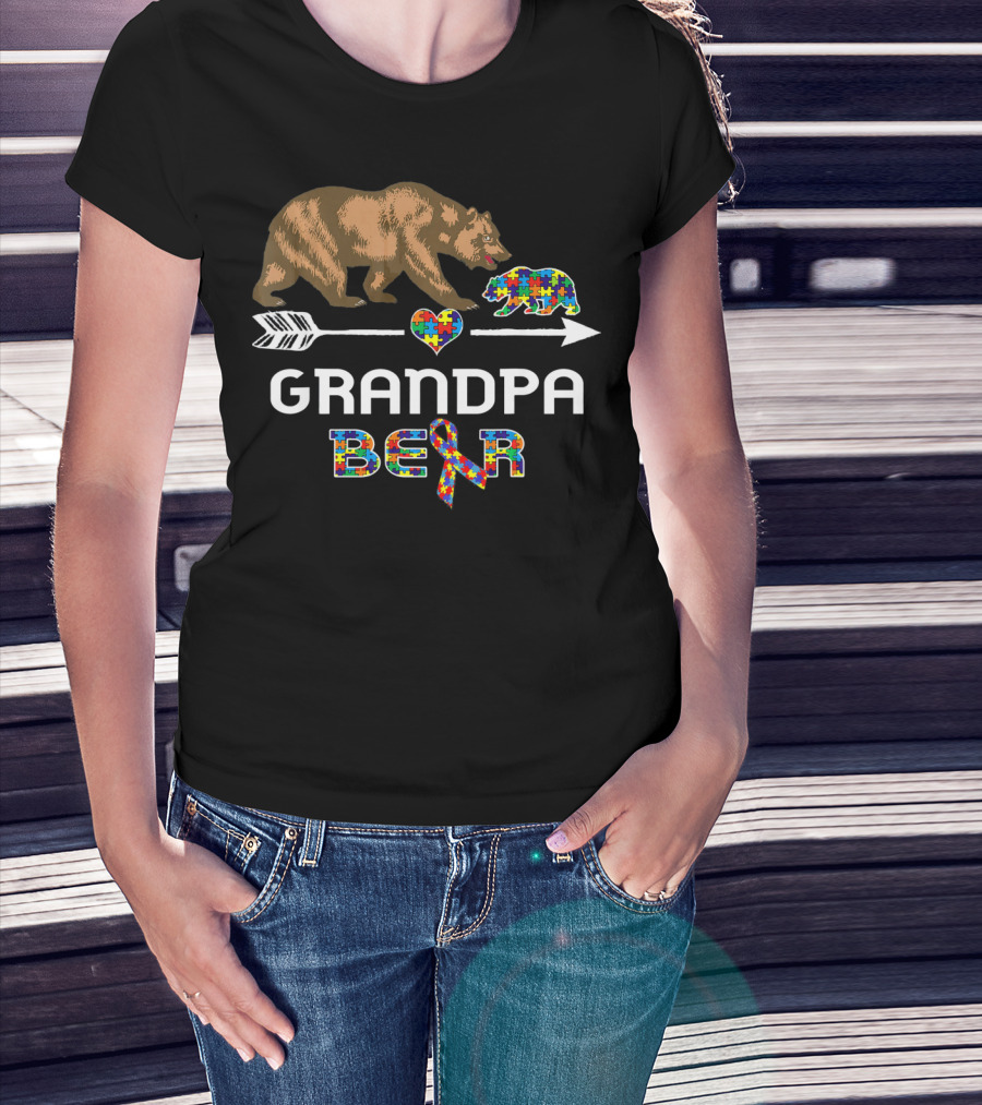 Grandpa Bear Autism Awareness Puzzle Heart And Ribbon T-Shirt