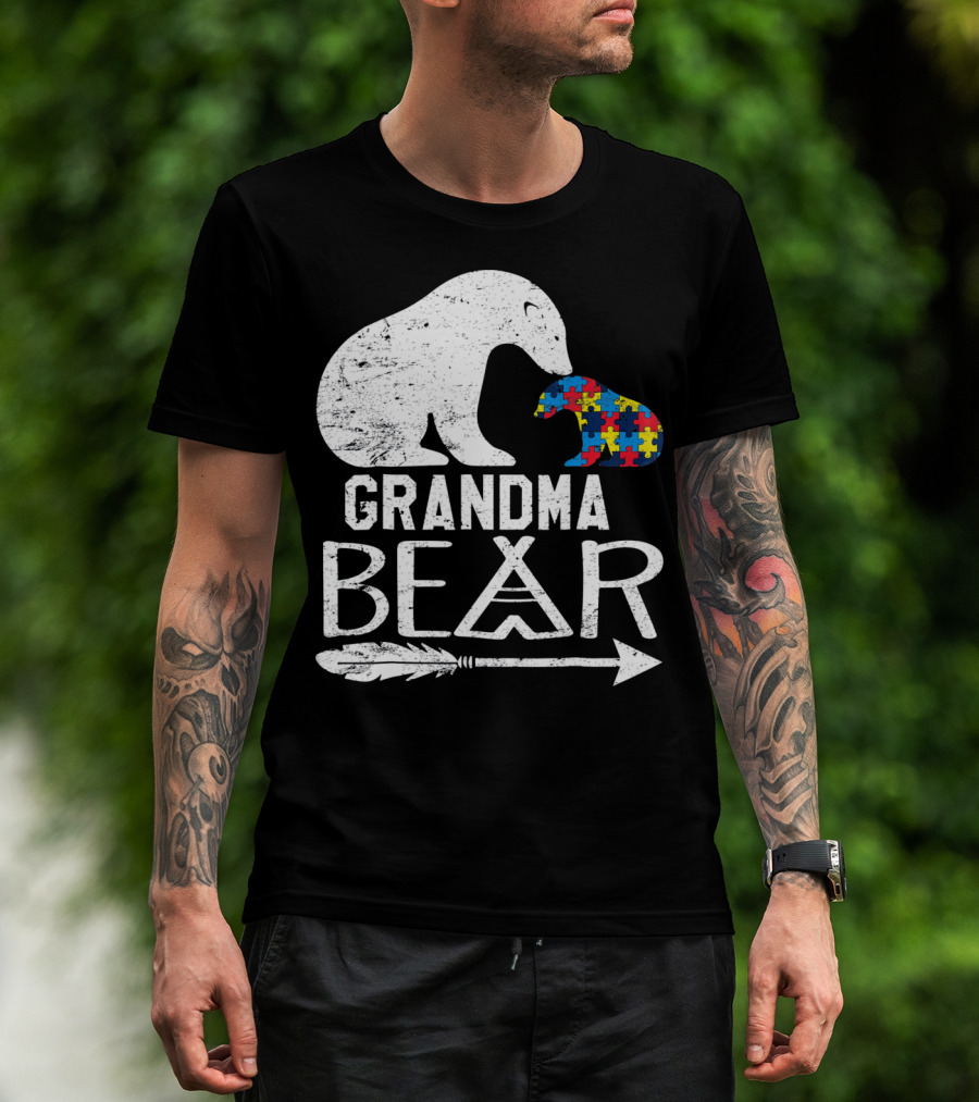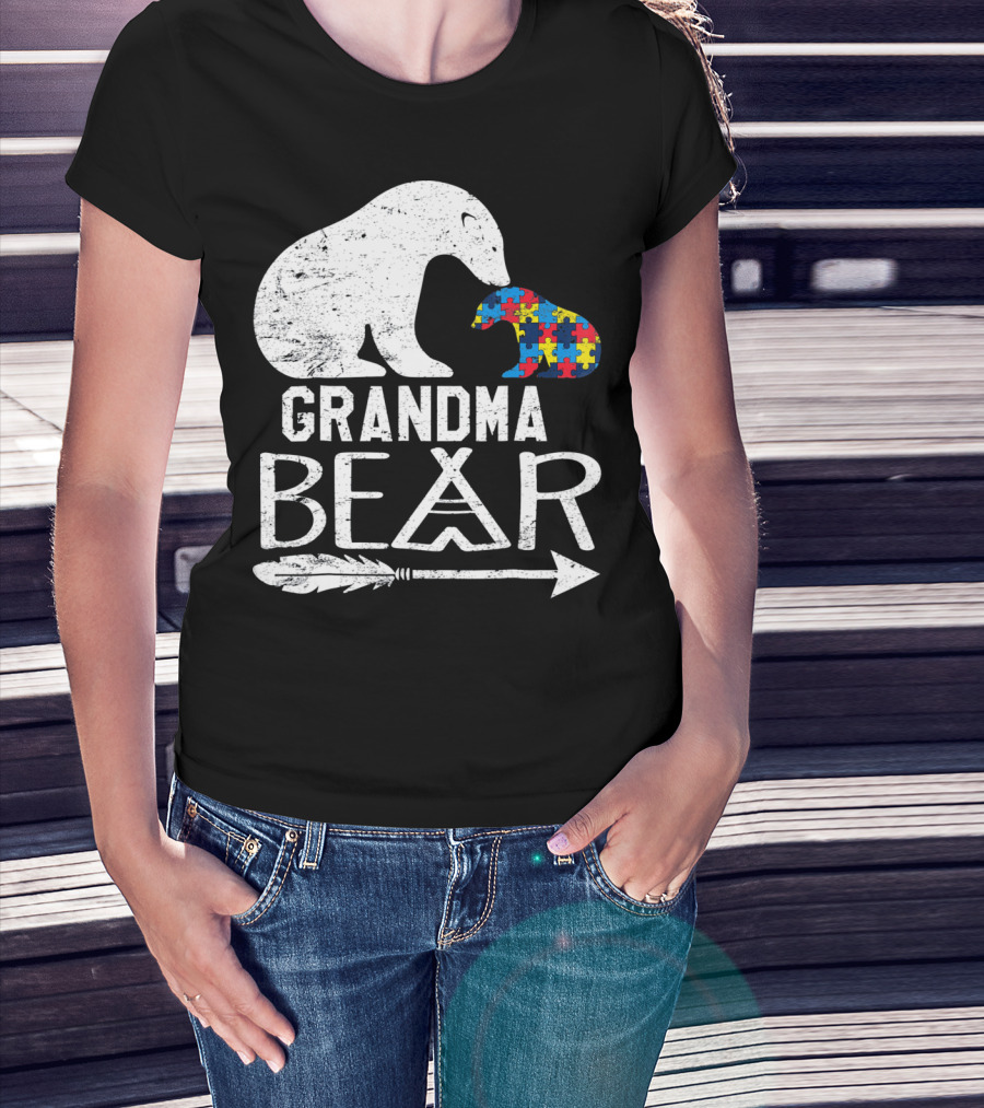 Grandma Bear Autism Awareness Puzzle Piece Arrow T-Shirt