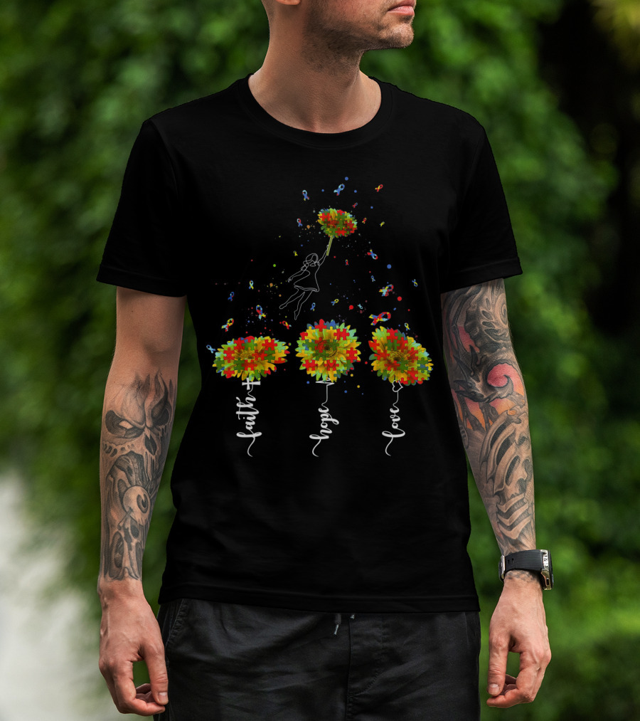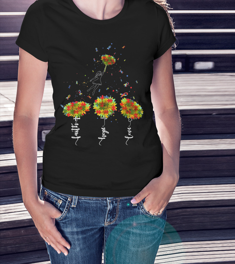 Faith Hope Love Sunflower Puzzle Pieces Balloon T-Shirt
