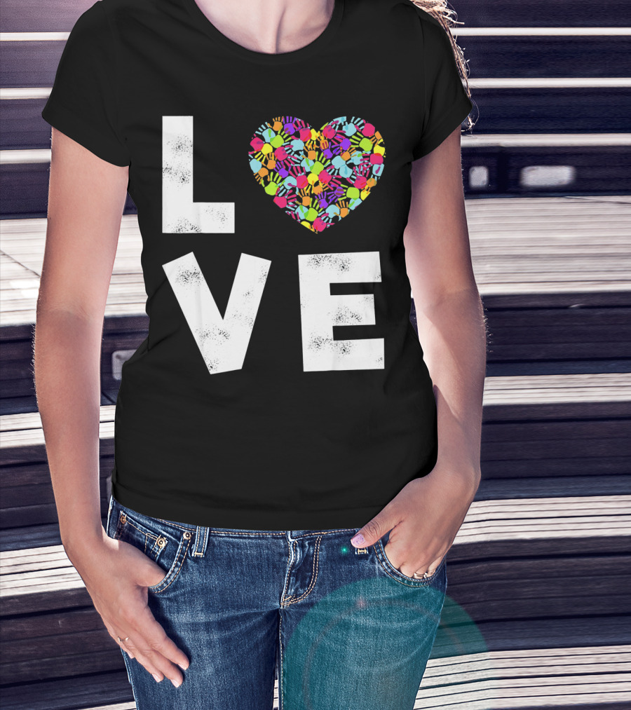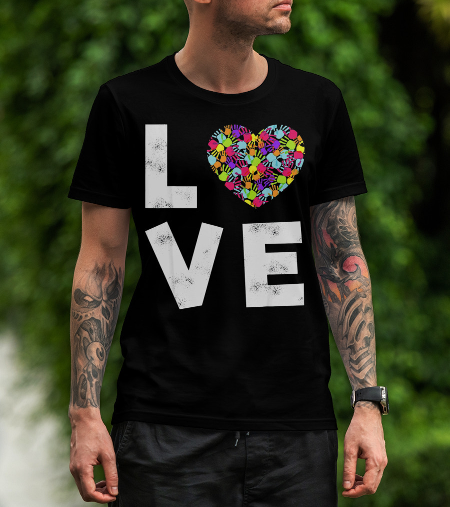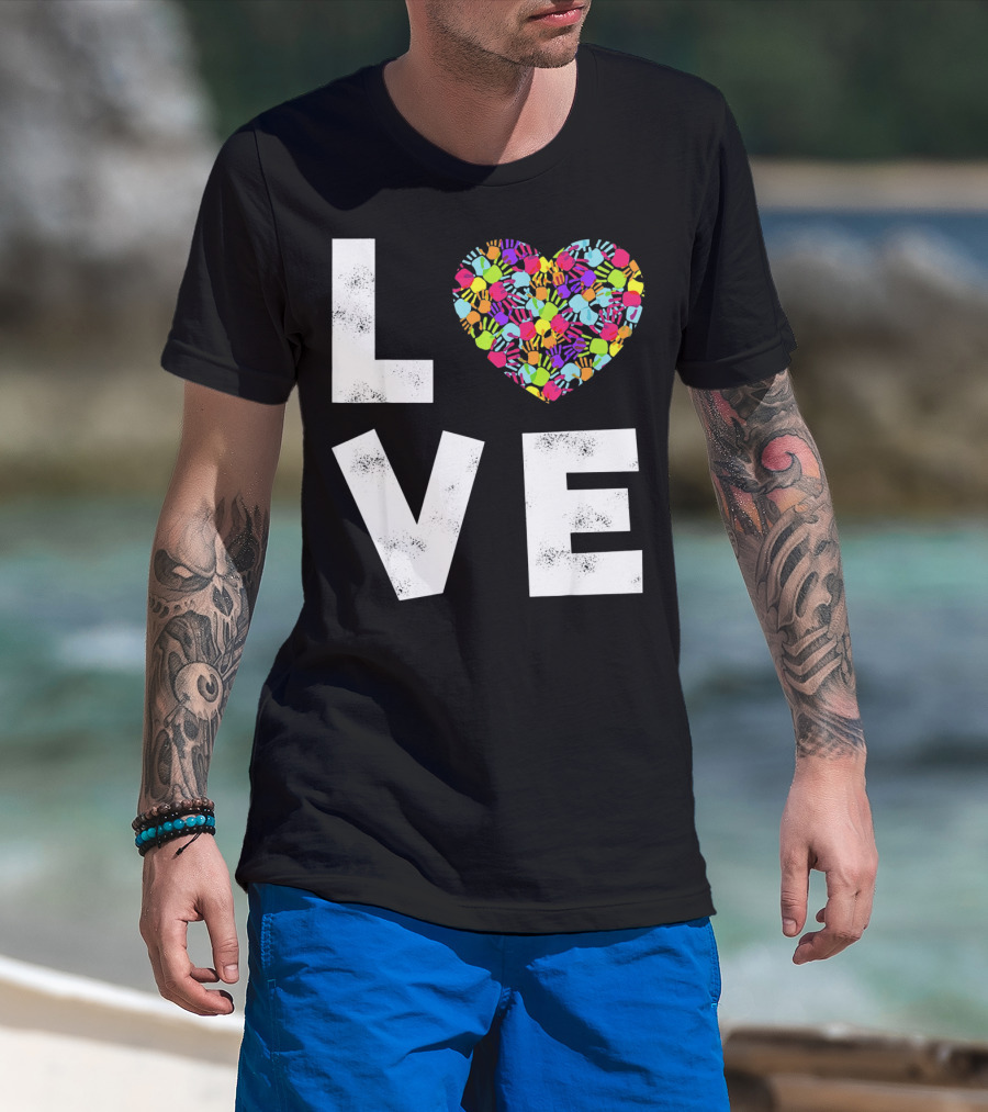 LOVE Heart With Colorful Handprints For Autism Awareness T-Shirt