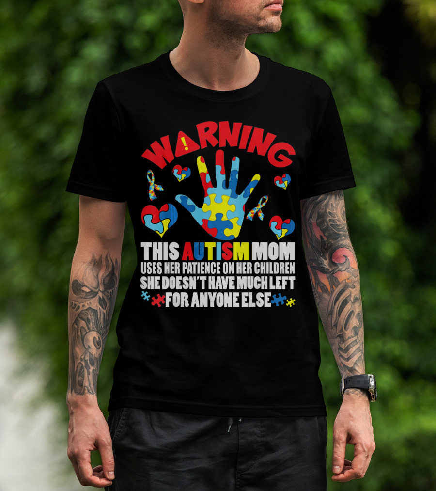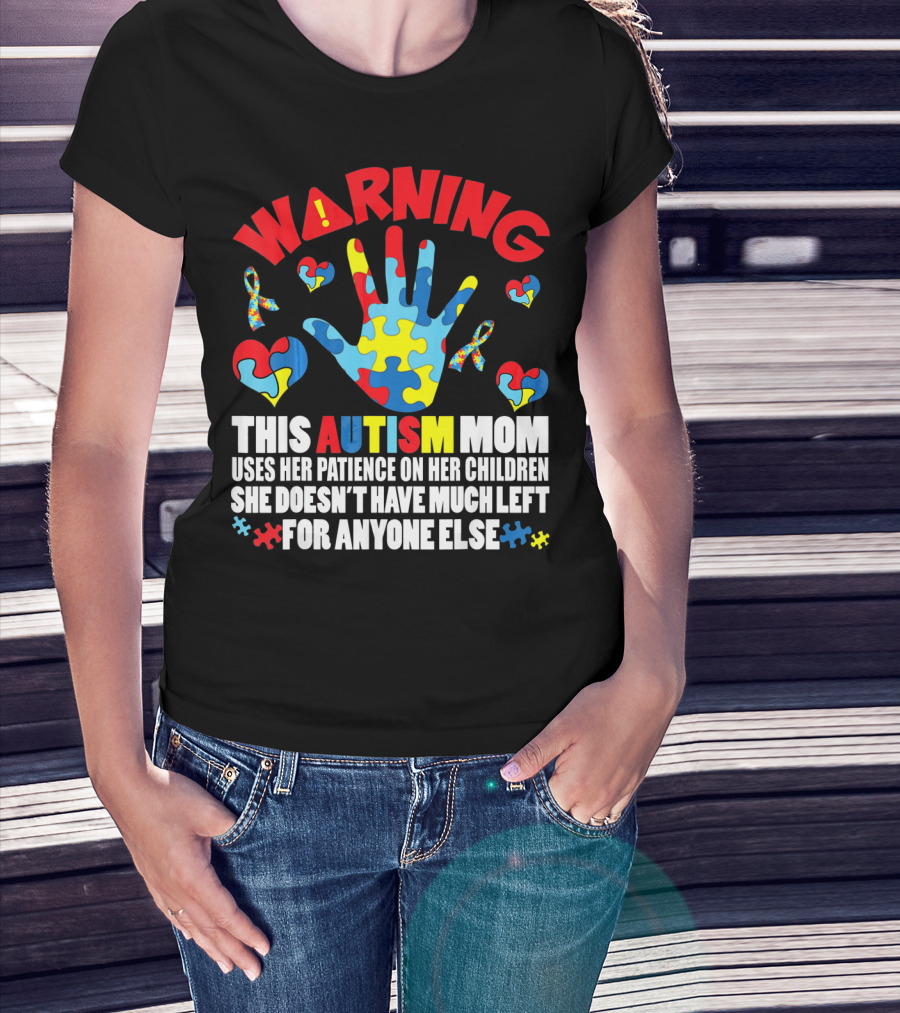 WARNING This Autism Mom Uses Her Patience On Her Children She Doesn't Have Much Left For Anyone Else Puzzle Ribbon Hearts T-Shirt