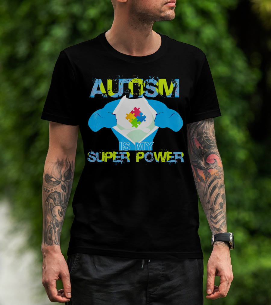 Autism Is My Super Power Puzzle Piece Autism Awareness T-Shirt