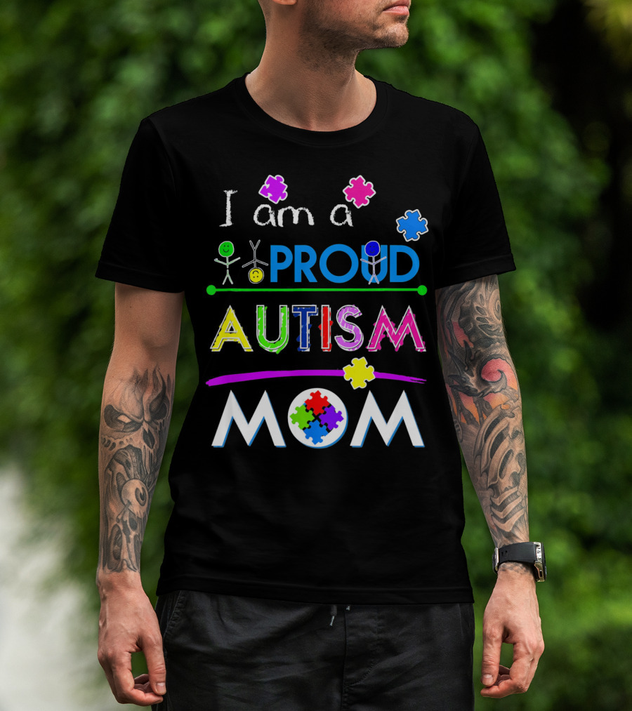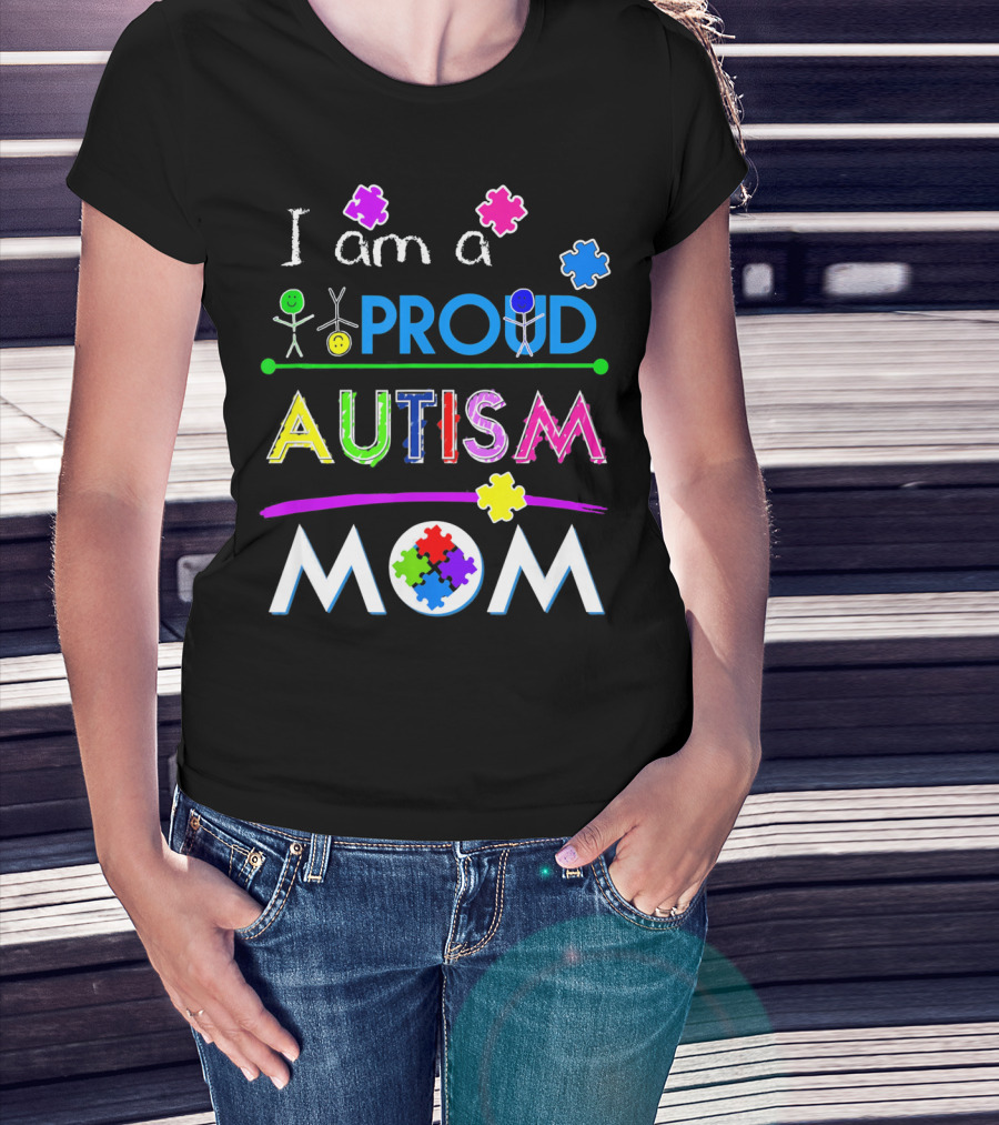 I Am A Proud Autism Mom Puzzle Pieces T-Shirt