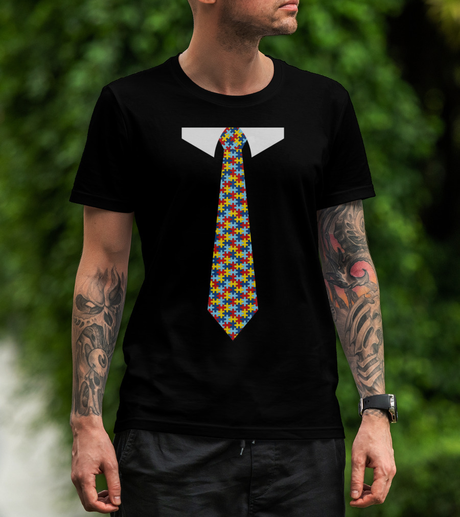 The Autism Awareness Puzzle Tie T-shirt is designed for everyday wear and a consistent fit. Fabric is pre-shrunk ring-spun cotton with durable stitching. See the size chart below for exact measurements.