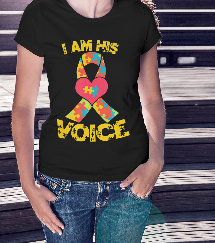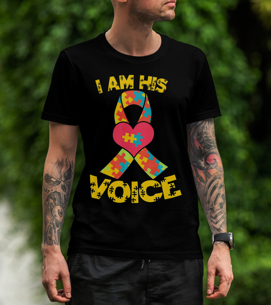 I Am His Voice Autism Awareness Puzzle Ribbon Heart T-Shirt