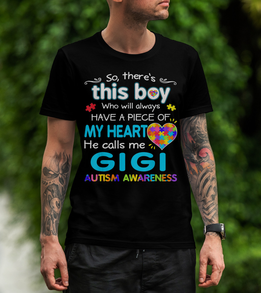 So There's This Boy Who Will Always Have A Piece Of My Heart He Calls Me Gigi Autism Awareness T-Shirt
