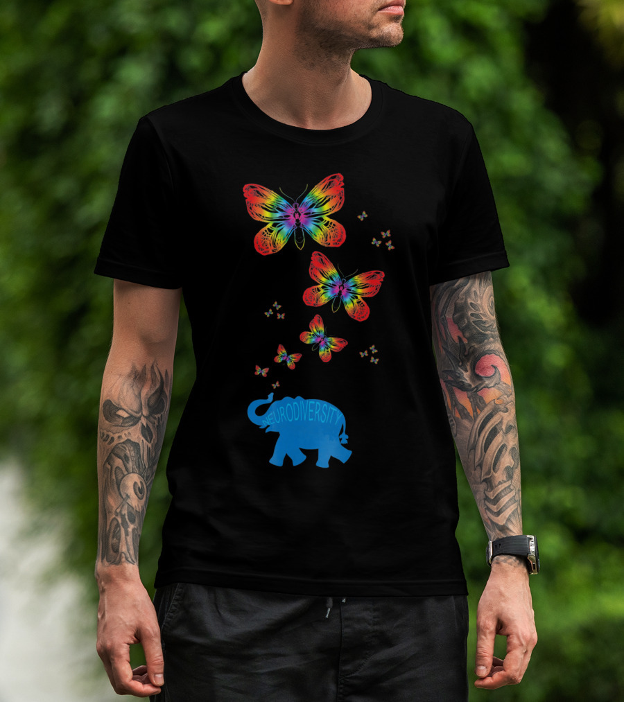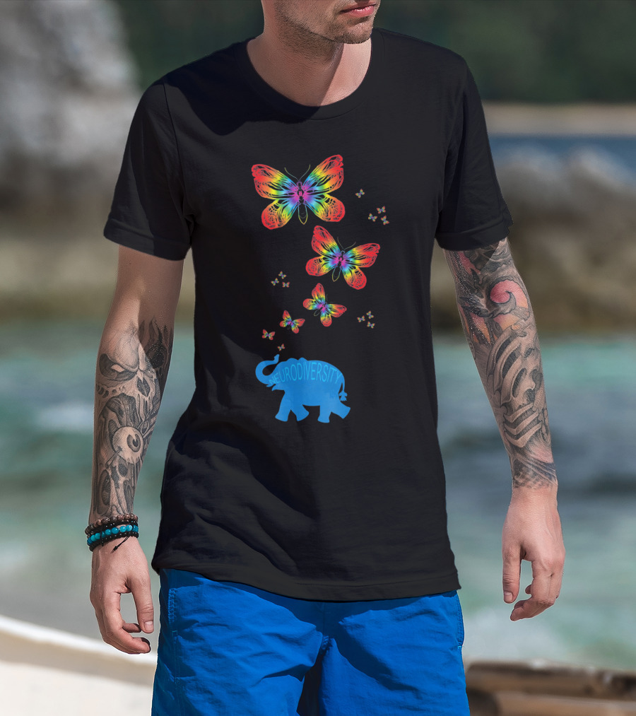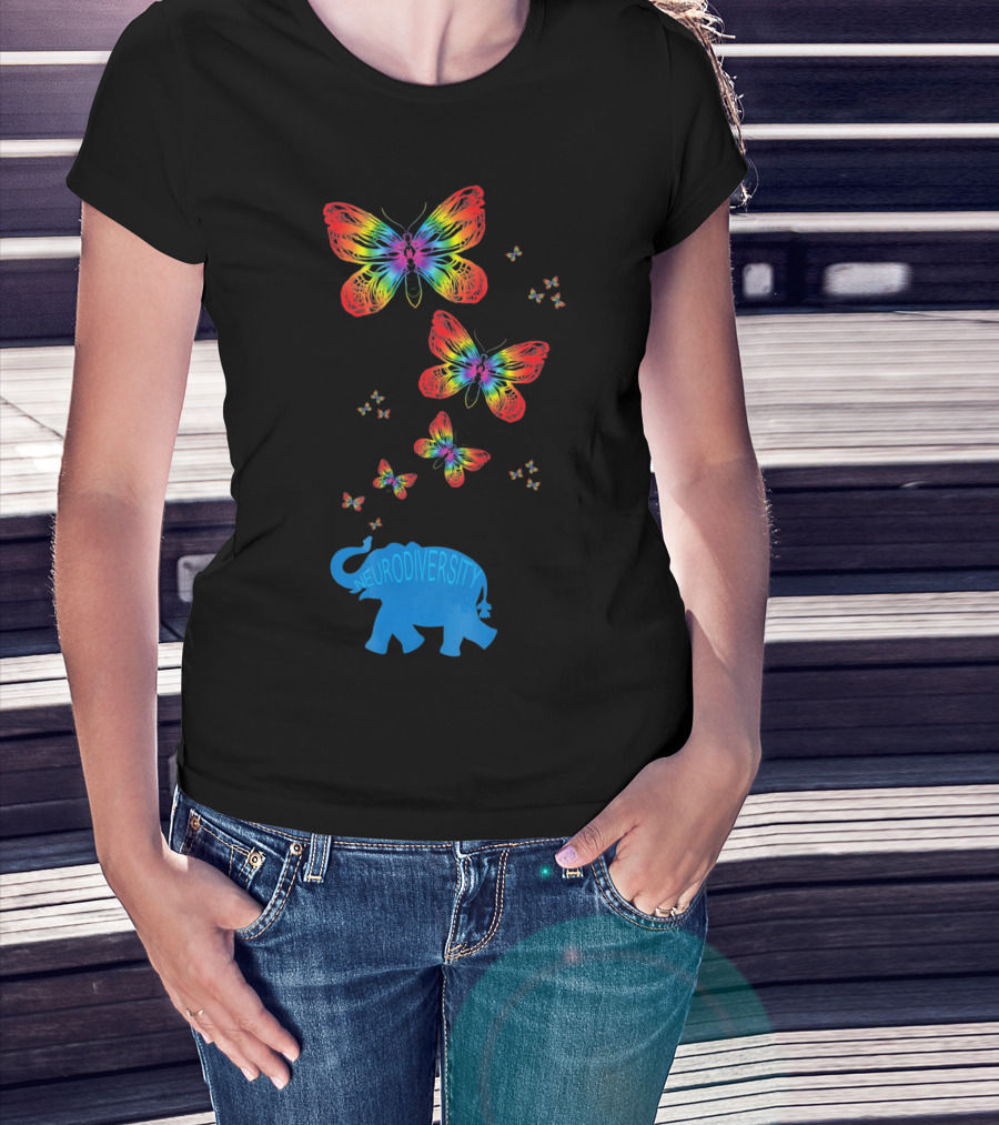 Neurodiversity Autism Elephant With Rainbow Butterflies T-Shirt