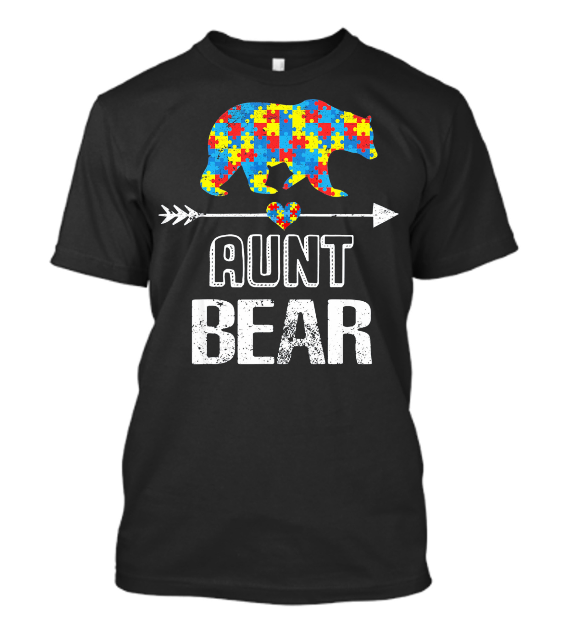 The Aunt Bear Puzzle Autism Awareness Heart Arrow T-shirt is designed for everyday wear and a consistent fit. Fabric is pre-shrunk ring-spun cotton with durable stitching. See the size chart below for exact measurements.