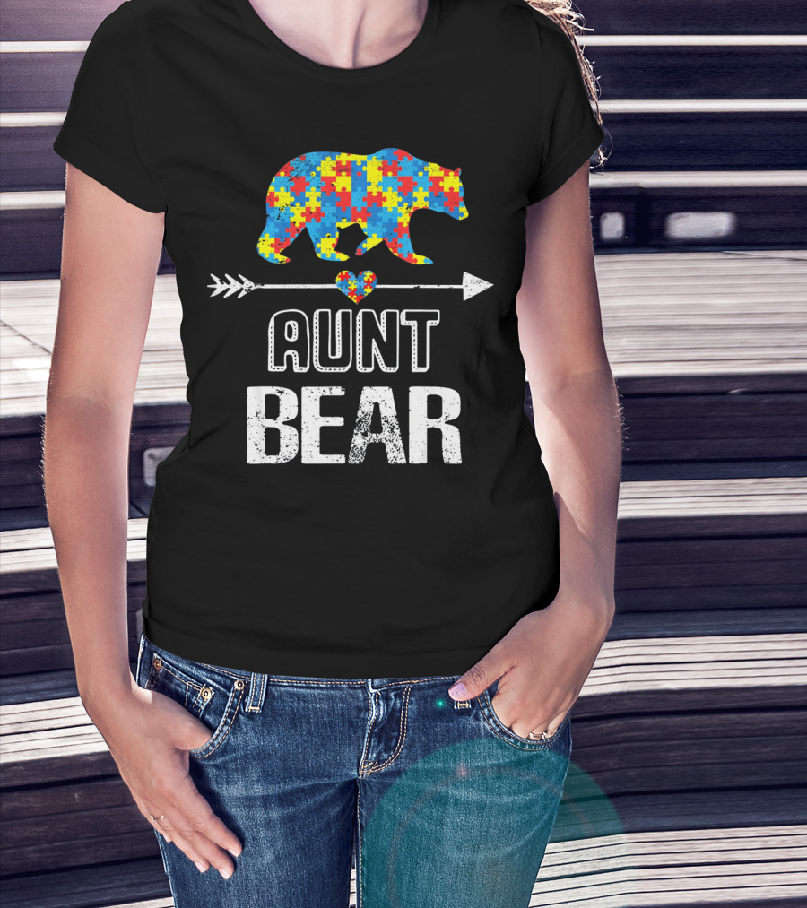 Aunt Bear Puzzle Autism Awareness Heart Arrow T-Shirt