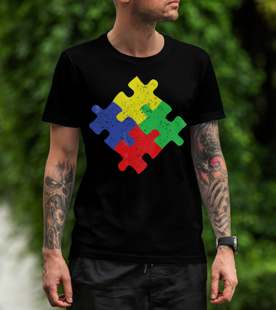 Retro Puzzle Piece Autism Awareness T-Shirt