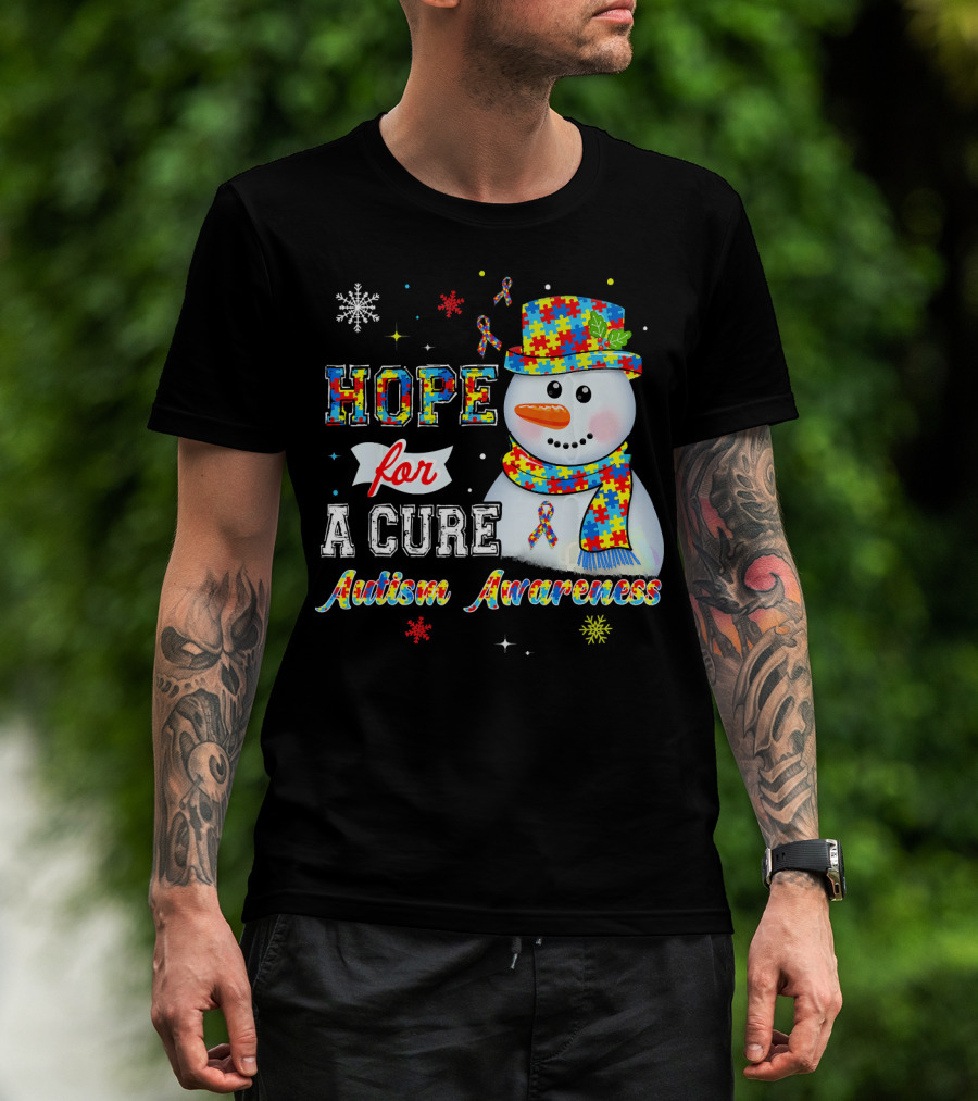 HOPE FOR A CURE Autism Awareness Snowman Puzzle T-Shirt