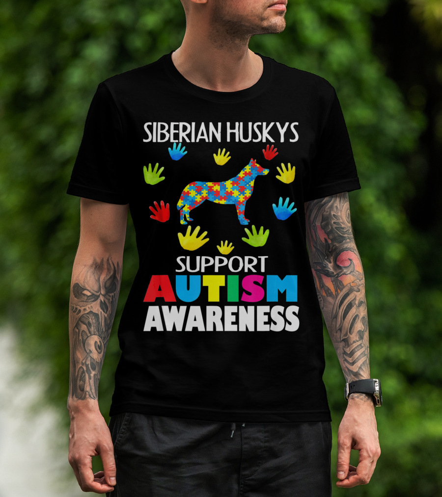 Siberian Huskys Support Autism Awareness T-Shirt