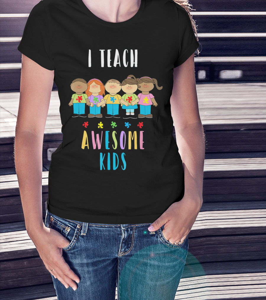 I Teach Awesome Kids Puzzle Piece Unity T-Shirt