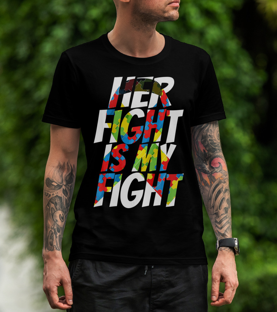 Her Fight Is My Fight Cute Autism Awareness Puzzle T-Shirt