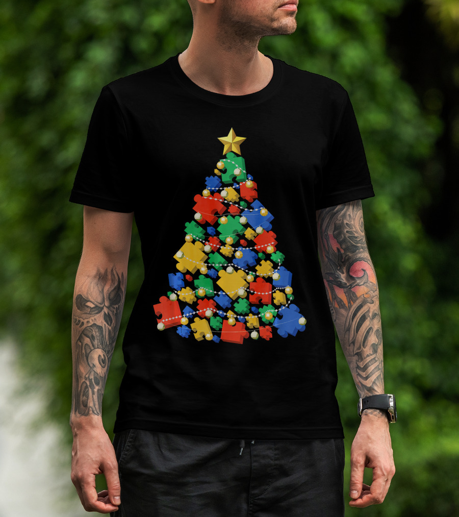 Christmas Autism Puzzle Tree Autism Awareness T-Shirt