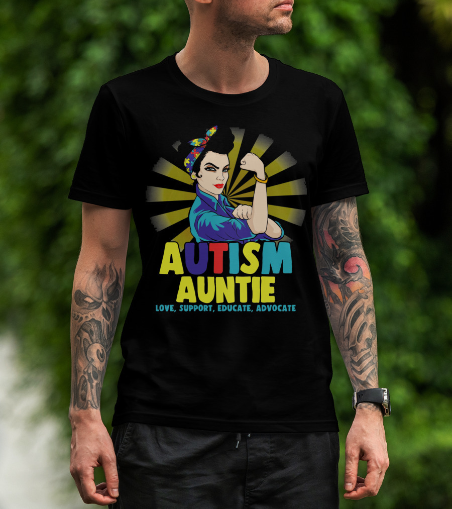 Autism Auntie Love Support Educate Advocate Autistic Awareness T-Shirt