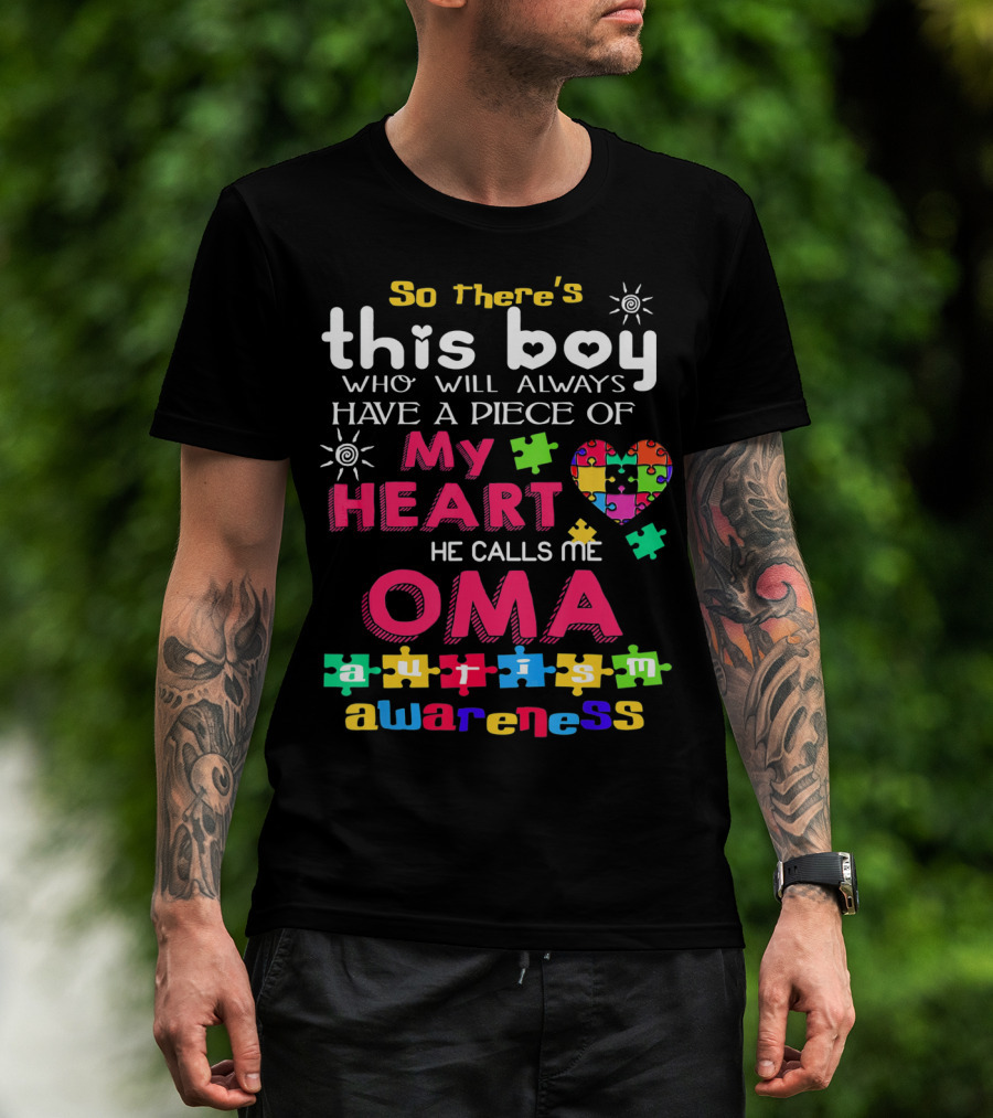 So There's This Boy Who Will Always Have A Piece Of My Heart He Calls Me Oma Autism Awareness T-Shirt