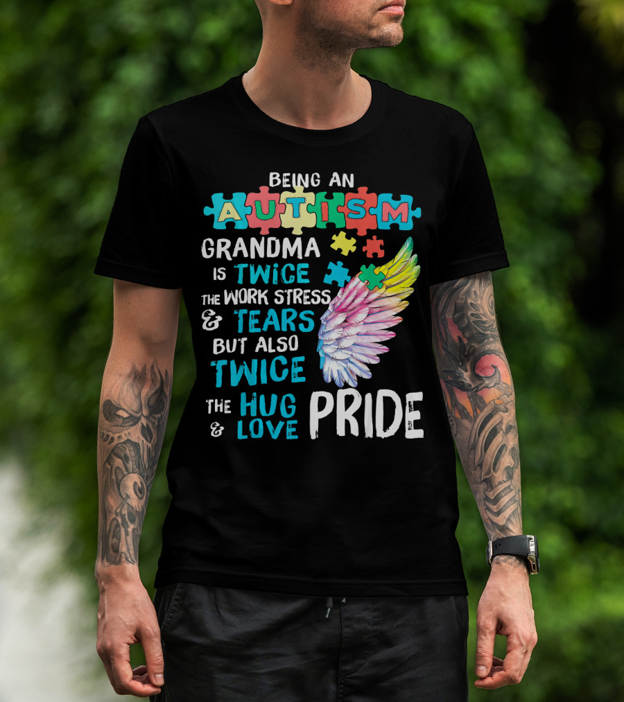 Autism Grandma Twice The Work Stress Tears Twice The Hug Love Pride T-Shirt