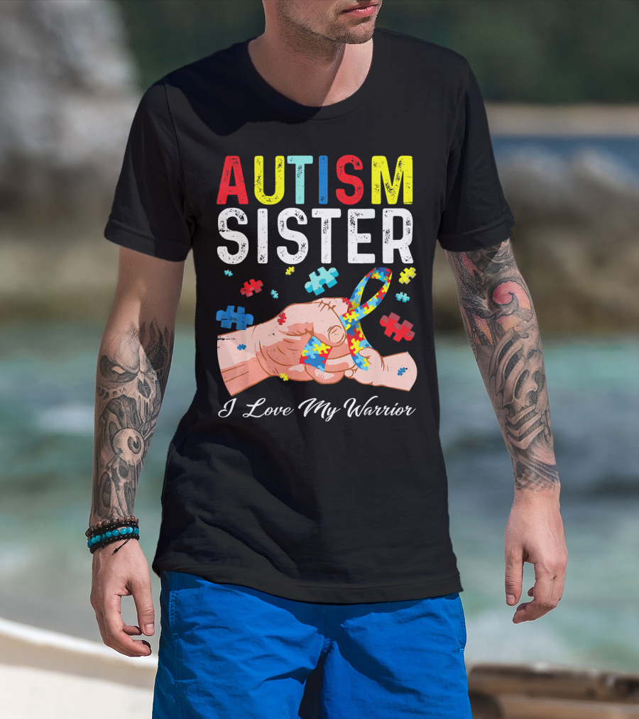 The AUTISM SISTER I Love My Warrior T-shirt is designed for everyday wear and a consistent fit. Fabric is pre-shrunk ring-spun cotton with durable stitching. See the size chart below for exact measurements.
