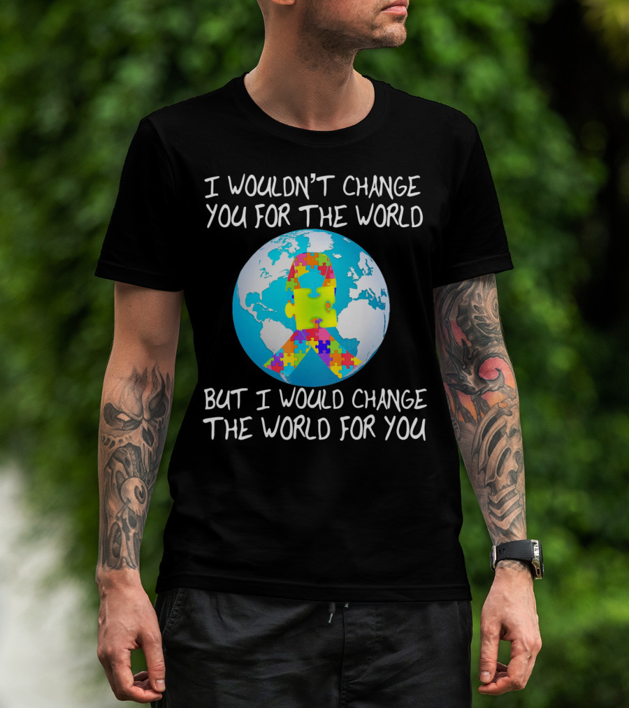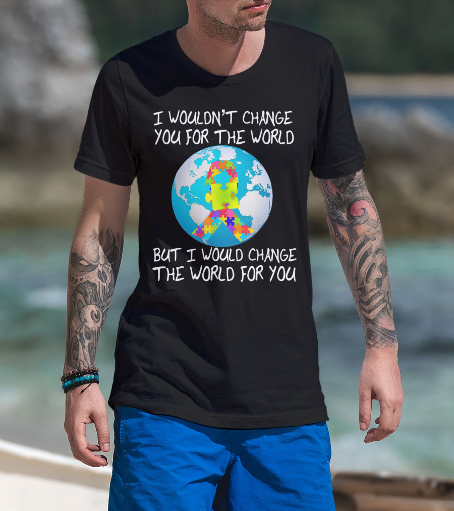 I Wouldn't Change You Autism Awareness Puzzle Globe T-Shirt