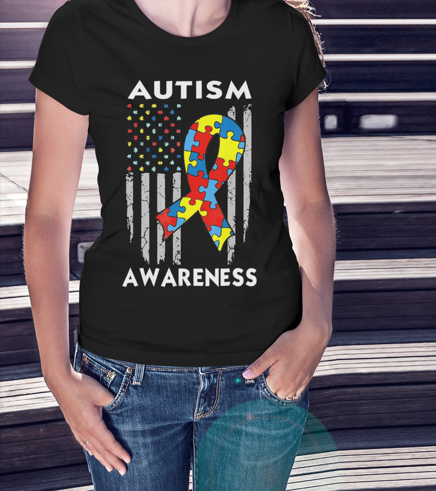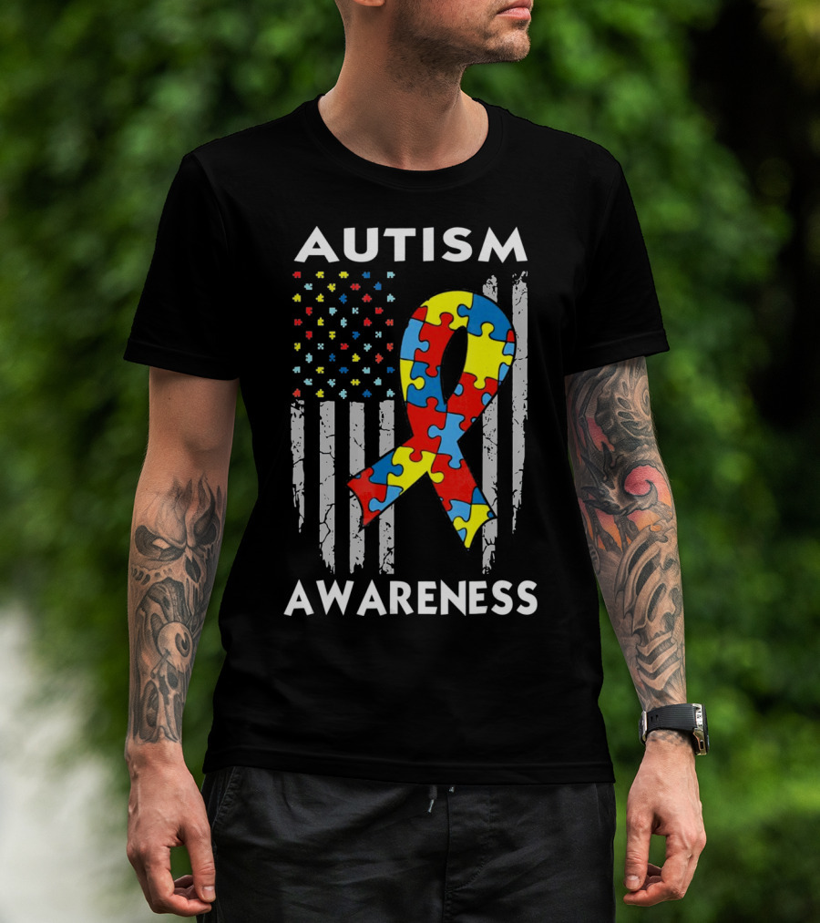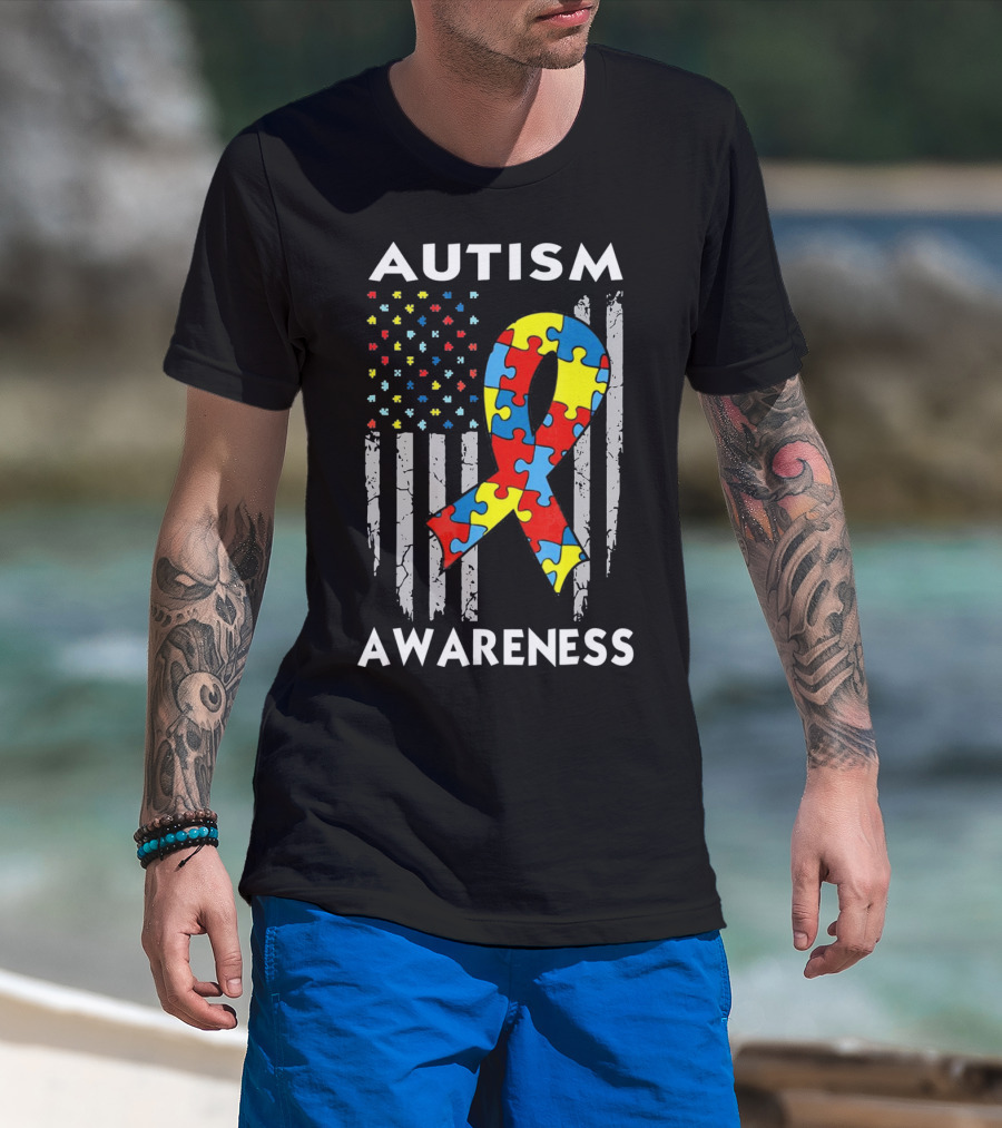 AUTISM AWARENESS USA AMERICAN FLAG PUZZLE T-Shirt