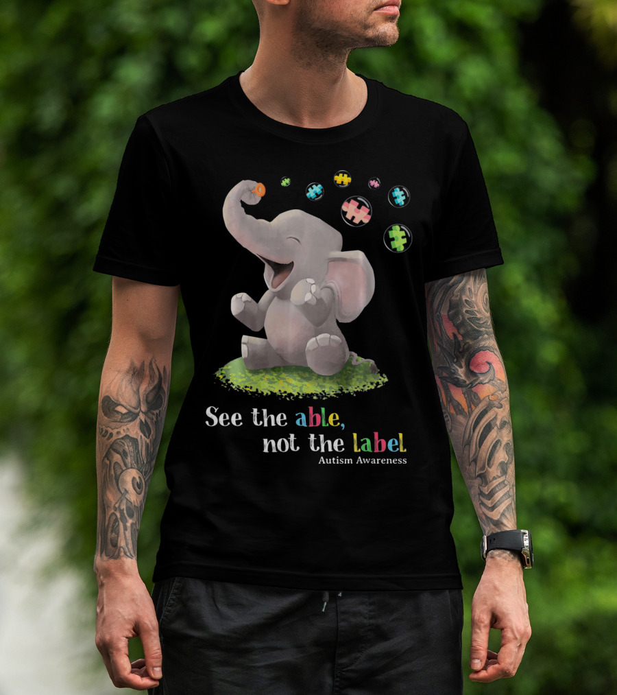 See The Able Not The Label Autism Awareness Cute Elephant Puzzle Pieces T-Shirt