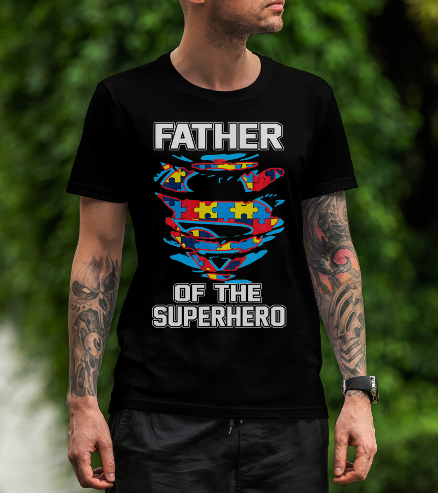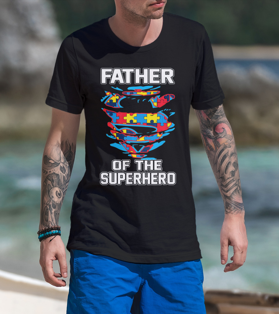 Father Of The Superhero Autism Awareness Puzzle T-Shirt