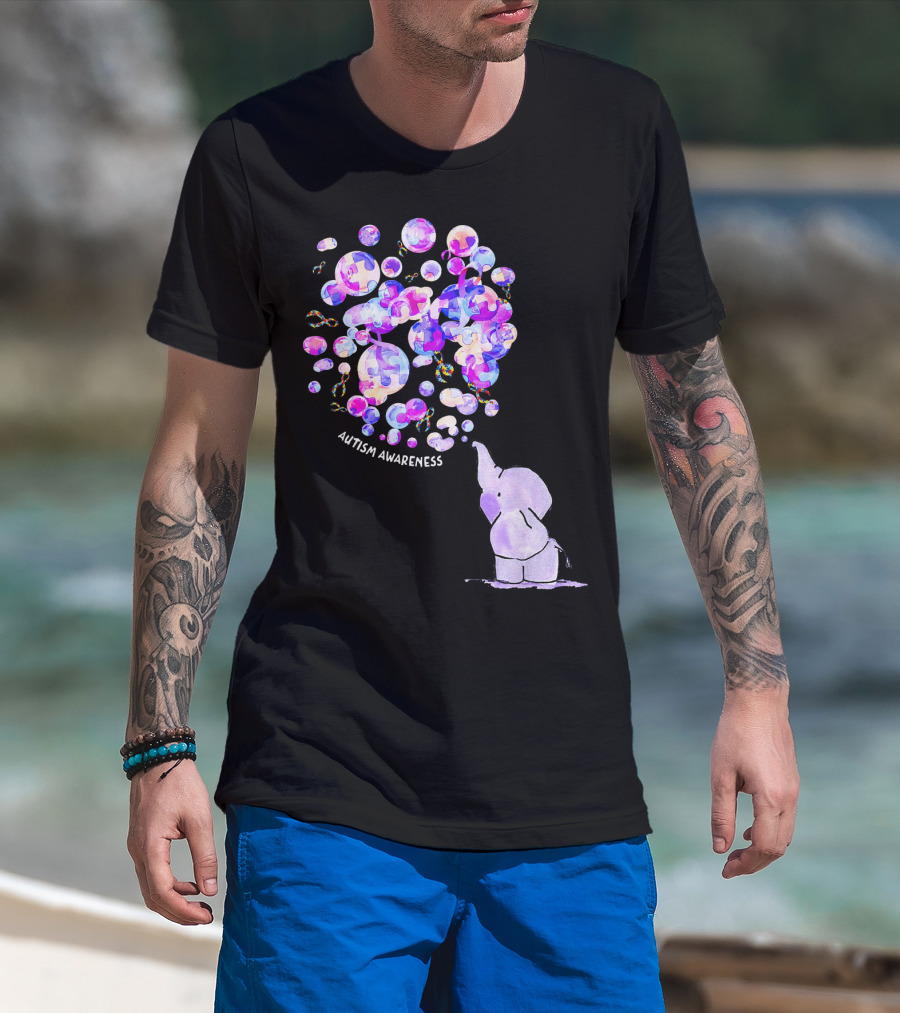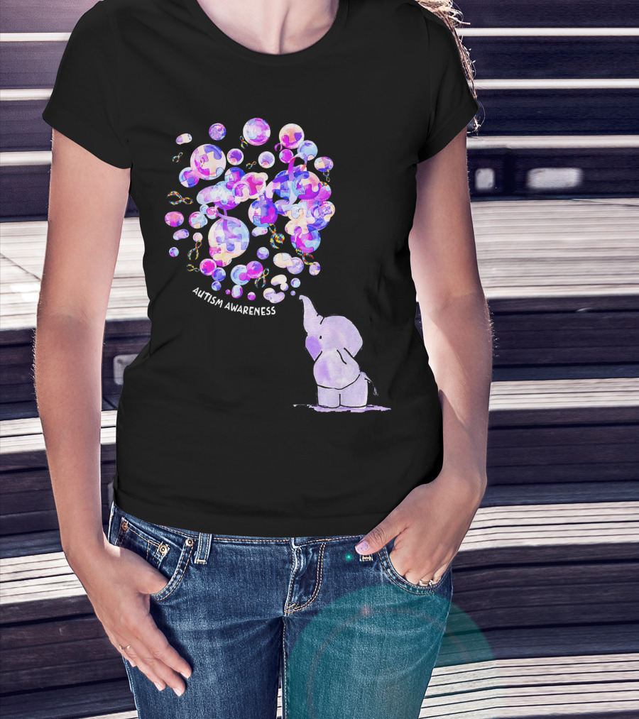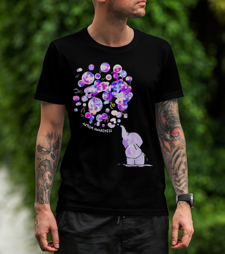 Elephant Blowing Puzzle Pieces Balloons Autism Awareness T-Shirt